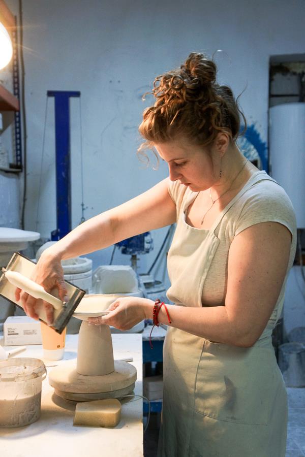 Anastasia Dulenko has loved sculpting since she was a child. "When I was nine, I spent summer at my grandma’s house. I found red clay there, I dug a whole lot of it and made 100 unique figures.” Years later, Anastasia remembered her love for clay and decided to do something about it. Her hard work paid off: now she has a studio, a full-fledged online store and a showroom. Anastasia’s main technique is slip casting. She works with semi-porcelain (ironstone), which she likes because of the density of the shard and the milky colour that it gets after firing. She is very meticulous in every step of the process and does everything herself: from mixing to firing. Sometimes she also uses hand-building methods like pushing out the slabs.