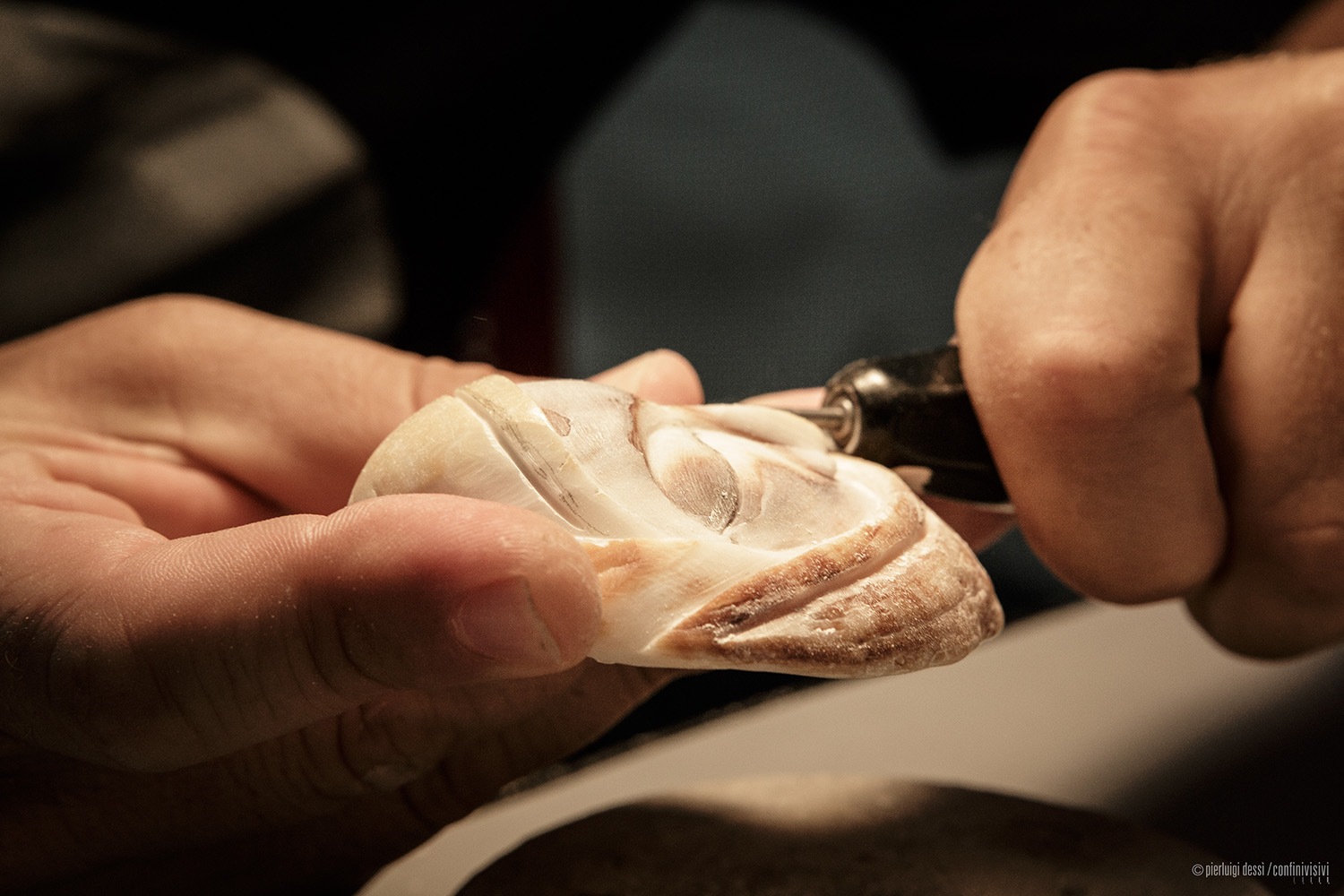 I studied coral and semi-precious stone sculpture. I had to develop specific techniques to work the shells, especially to make them shiny and bright. Also, I am a self-taught goldsmith, so I experiment with metalworking very freely.