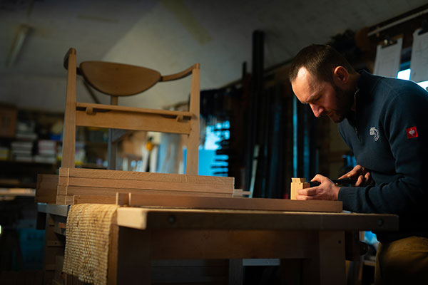When Angus Ross was first working in wood, he decided to make a travelling chest for his wife, Lorna, who was a community midwife. It stored a collection of aromatherapy oils and had a central section with two lidded drawers that could be taken to home births. “I had a book of Witch Doctor masks from Africa, which had a sense of mystery and magical healing powers. The shape and proportions of the cabinet were directly influenced by those masks. I also liked the fact it was for a specific person and a specific function,” he says. Creating a narrative based around a person, place and function is still central to his designs. He is passionate about combining ancient techniques with traditional cabinetmaking, and sustainability is central to his ethos.