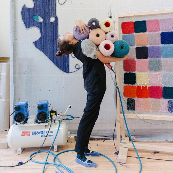 When coming across some of Anna Štajglová's works, the first thing you notice is the striking colours – that's why you can't overlook her piece in any interior. What makes you watch it further is the witty motif: the play of creativity stimulating your imagination. Once you come closer, you feel the urge to touch it. And the author feels the same: "I like the tangibility of my objects. The wool is so soft, so delightful to touch. That's why I like to work with this material. It's genuinely relaxing." And so is observing the final pieces. The joyful nature of Anna's creations soothes the mind; the fluffy texture caresses the body. No wonder that her works gained numerous design prizes and nominations.