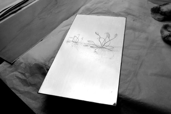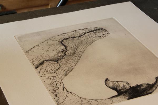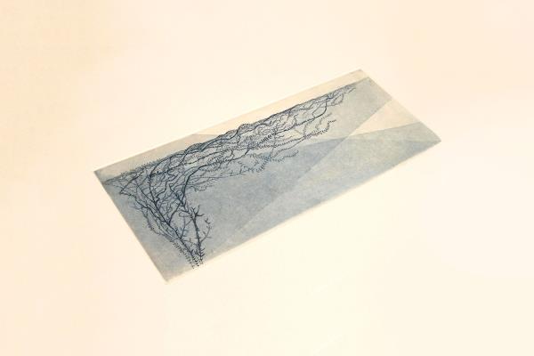 In her printmaking, Annie Bocel seeks to capture atmospheres of the natural world, shedding light on what is lost or forgotten, and revealing the unknown. “My works are like maps that guide you towards this otherworld,” she says. When Annie opened a printmaking workshop in northern Finistère, she simultaneously became an engraver of typographic punches at the French national printing office. She contributes to highlighting the importance of typographic punches and their conservation, a profession recently listed on the French intangible cultural heritage list. This experience has exposed her to many different scripts, such as Cuneiform, Tifinagh, Arabic, Japanese and Hebrew, which she appreciates for their beauty.