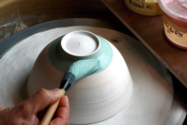 Antonio Julio López Castro has always been fascinated with making things and with colour. This goes someway to explaining his dual identity as painter and potter. Love brought him to Ireland and he now works from a studio that was once the childhood home of his wife. Here he creates work which is influenced by the colours and textures of the Irish landscape, combining the ‘wetness’ of a gloss glaze with the ‘dryness’ of a matt earthy brushstroke. Though he often starts with sketches and creates colour studies, he describes his process as being centred on the potter’s wheel itself; working directly with the material. His collection of water droppers is particularly striking for its strong forms and organic colours.