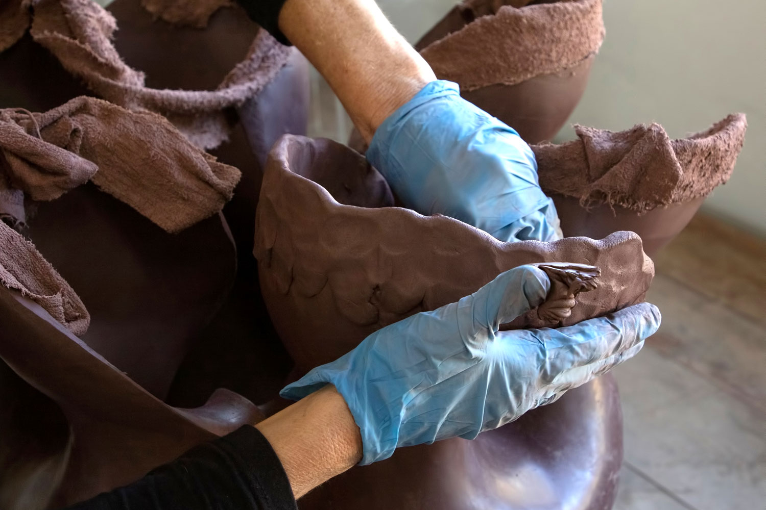 Astrid Dahl launched her career in 2002 after a formative period in a bronze casting foundry, eventually returning to the ceramic coiling technique she had learned as a student at Natal Technikon. She made a move away from industrial rigidity toward a more organic sculptural syntax, a shift catalysed by a collaboration with South African design 'guru', Neville Trickett. "We started with vessels that had broken tops, and literally broke the tops off vessels," Astrid recalls. Her monochromatic language clicked once she was introduced to a book of 19th-century botanical photography. Today, Astrid’s search for authenticity is a disciplined undertaking. Every day, she channels her devotion to proportion into forms that feel both ancient and contemporary.