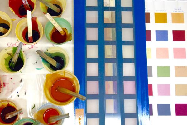 Both men felt that Lyon was missing a space dedicated to silk colouring techniques, to allow the general public to know more about this important process which is usually carried out in private workshops – with great secrecy. They decide to remedy this weakness by opening the Atelier de Soierie, a private site of production which has the originality of being open to the public. Today, it is also the last workshop in France using silkscreen printing by hand. Specialised in art reproductions, they print squares and scarves for museums and art foundations around the world.