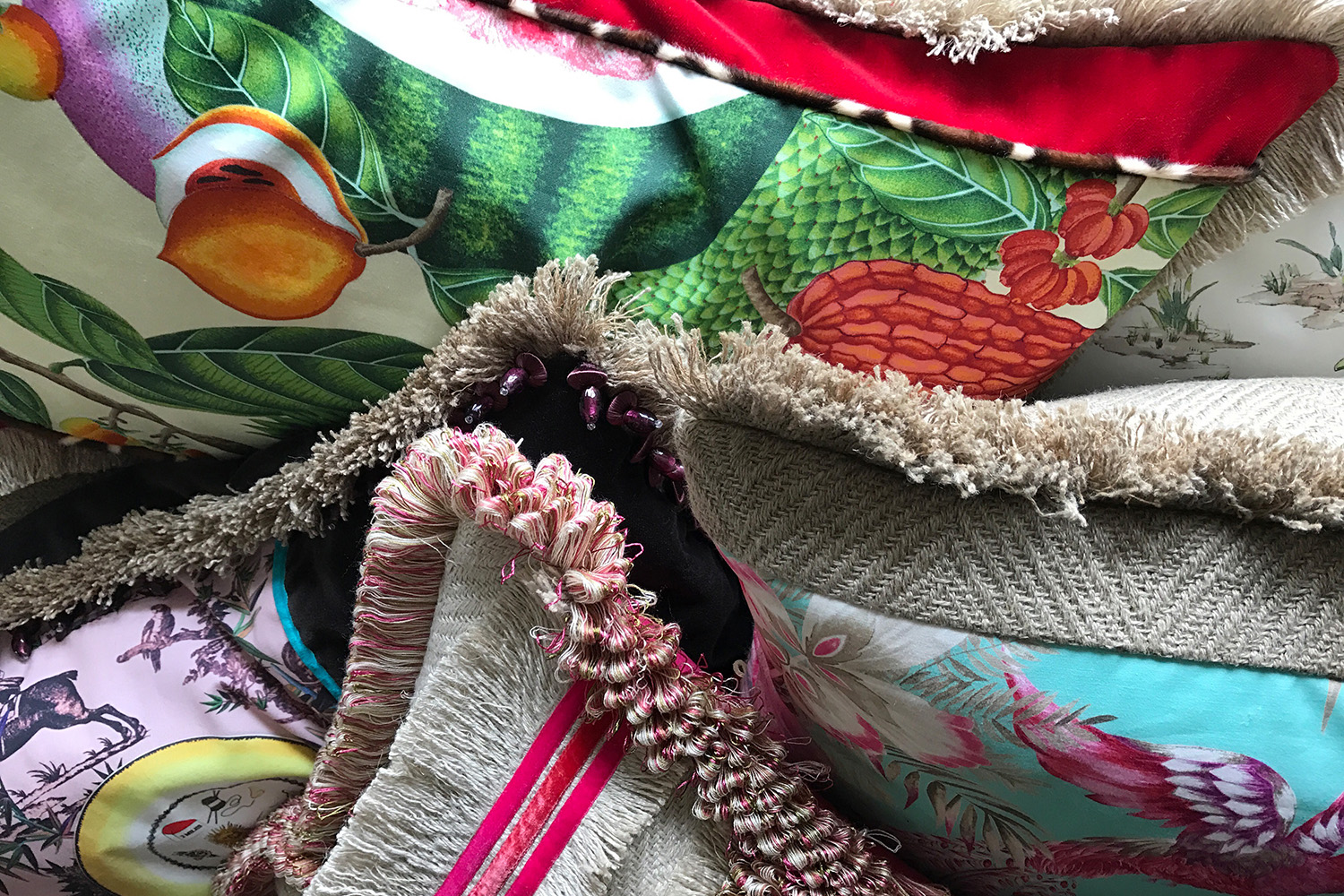 Barbara Jagoda-Maas grew up surrounded by swathes of fabric and the tools of her mother who was a dressmaker. Her mother's work inspired her to follow a similar path. First, Barbara apprenticed with a ladies' tailor, then studied fashion design in Bielefeld. While still a student, Barbara immersed herself in the fashion industry and stayed there for almost 20 years. However, fashion's temporary nature and over-functionality did not allow her to unleash her creativity fully. So, in 2018, she set up her own studio, where she creates textile objects for the home. She works with one-of-a-kind textiles supplied by fabric makers from all over Europe with decades of experience in their manufacture. She chooses colourful, exotic, original, eye-catching motifs that will produce captivating interior accents for her customers' homes. "It is important to me that my work lasts a long time,” confirms Barbara.