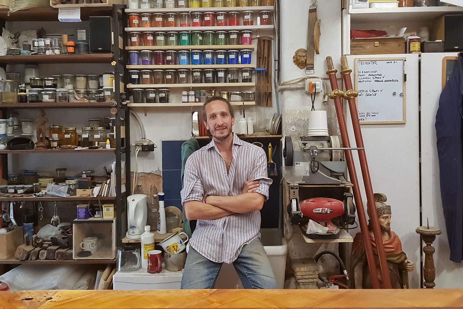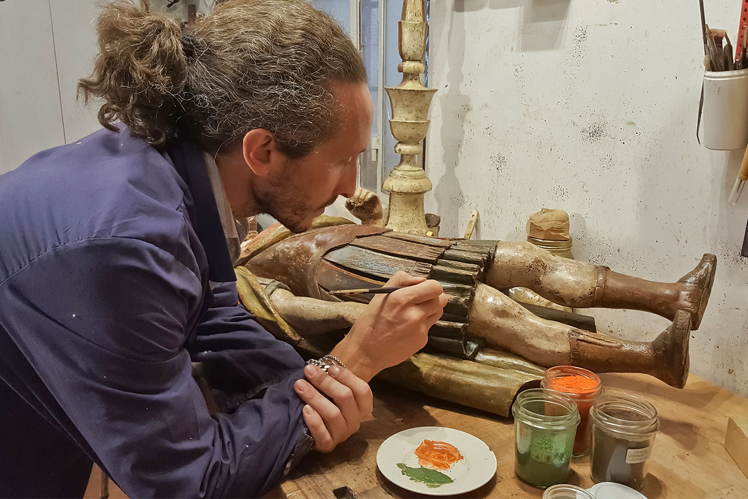 After a few years at university, where he studied chemistry applied to conservation, Alvise Boccanegra understood that he had different dreams. So he made contact with a restoration workshop inside the Curia of San Marco, where he met his master, Maximilian Leuthenmayr, and remained for the next seven years. He credits his master for having "a deep desire to convey his knowledge, while normally craftsmen don't reveal their secrets". A few years later, Alvise set up on his own. "It was hard at the beginning, when I opened my workshop," he says. "It’s not that easy to convince customers to trust you. Now I can’t complain, there’s so much work."