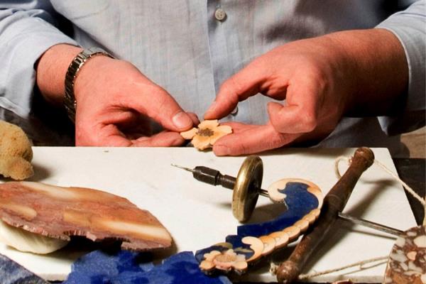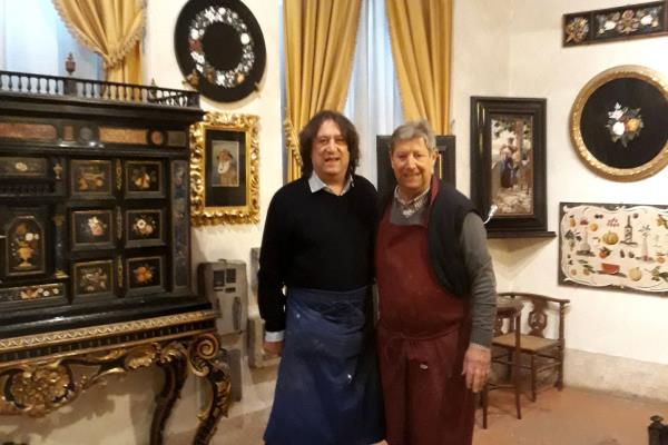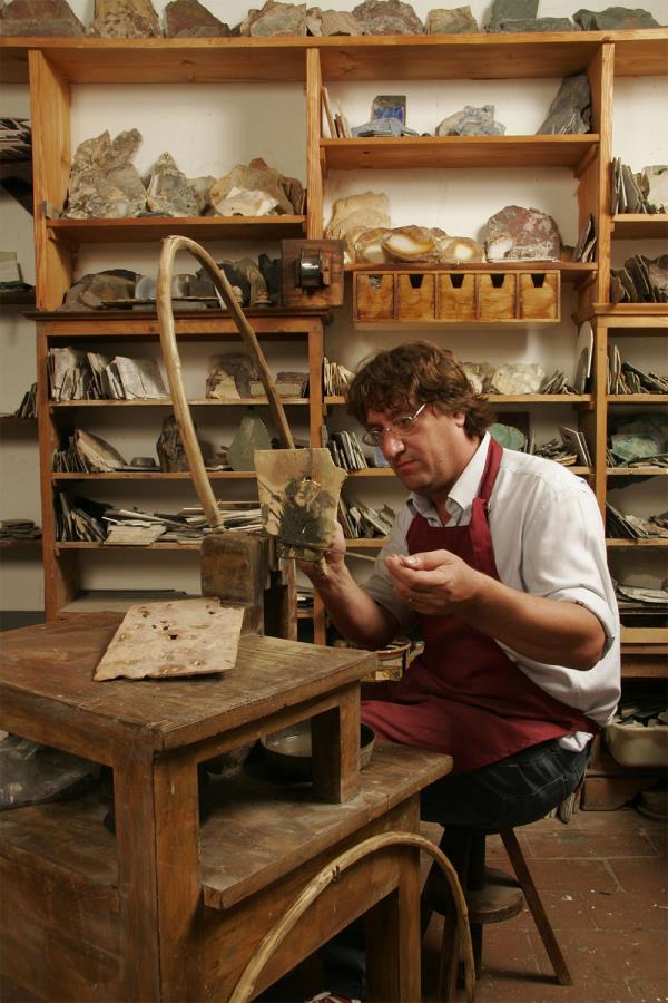"In the workshop we are like friars. It is like being in a seminary: silence, great concentration… Then once we get out of here we are like devils. After a day in the workshop, where we do our work with passion and seriousness, we really need to chill out and have fun," recounts Iacopo. Both himself and his father Bruno are expert mosaicists or rather stone marquetry artists who practise the Florentine commesso technique. It is a craft that has remained unchanged since the 1500s, when it was developed under the Medici family. Today they still use the same tools: the few artisans who have tried to industrialise this technique have closed quickly. Bruno and Iacopo's customers spend a fortune on the works made by the duo. Each piece is the result of demanding and time-consuming craftsmanship which makes the costs of their creations very high. For a particularly elaborate piece, the two craftsmen might spend years in production.