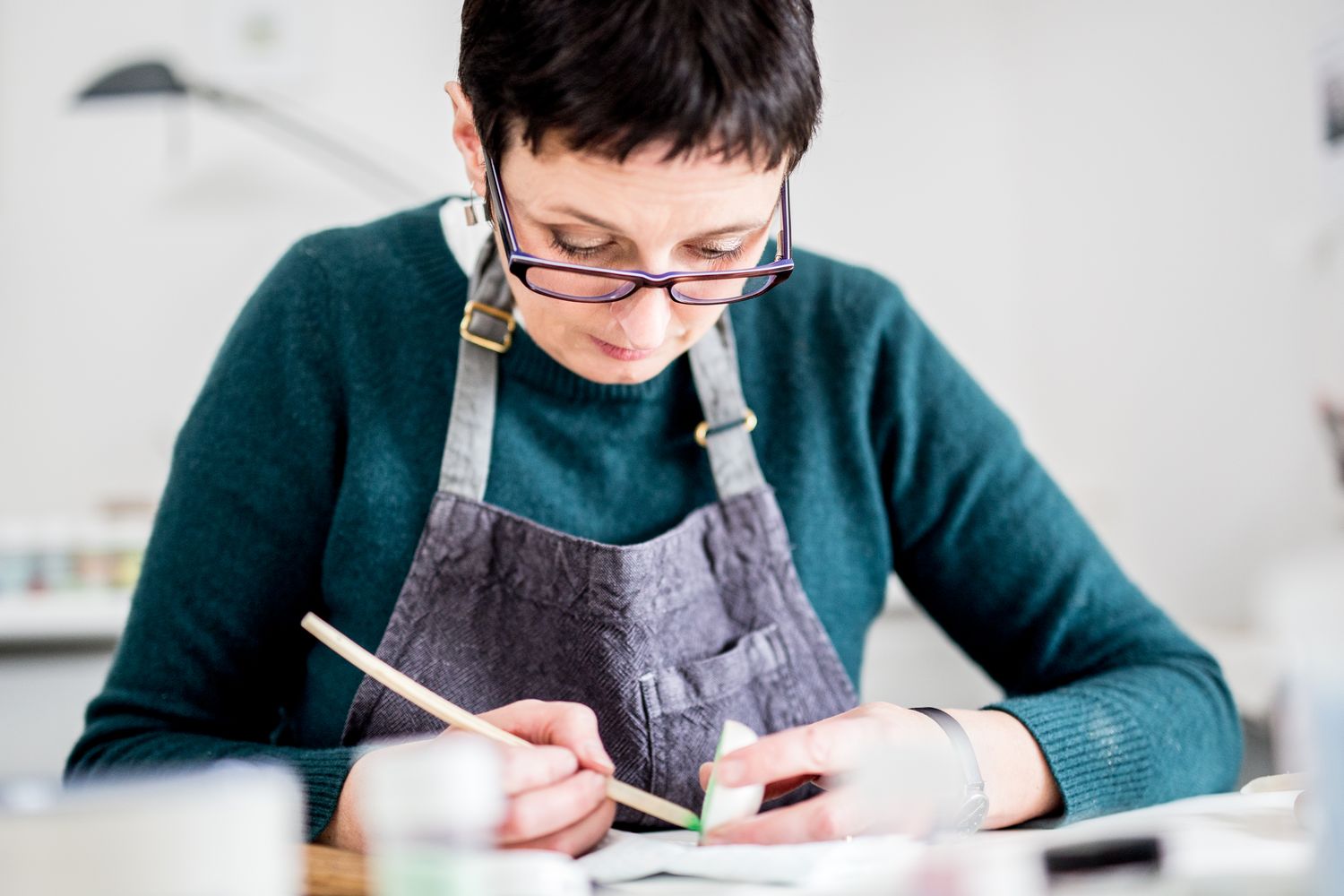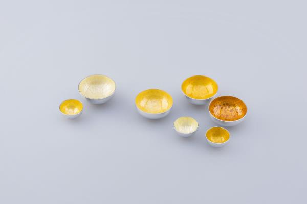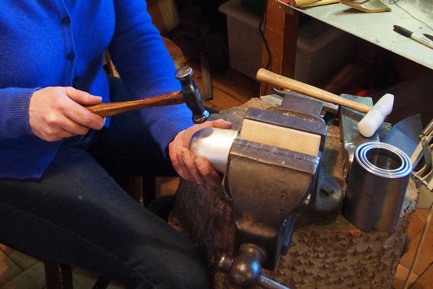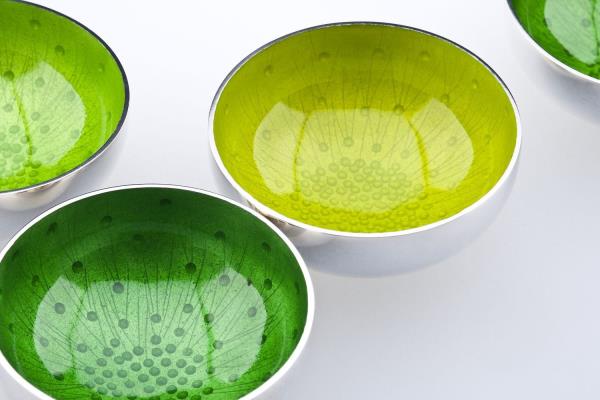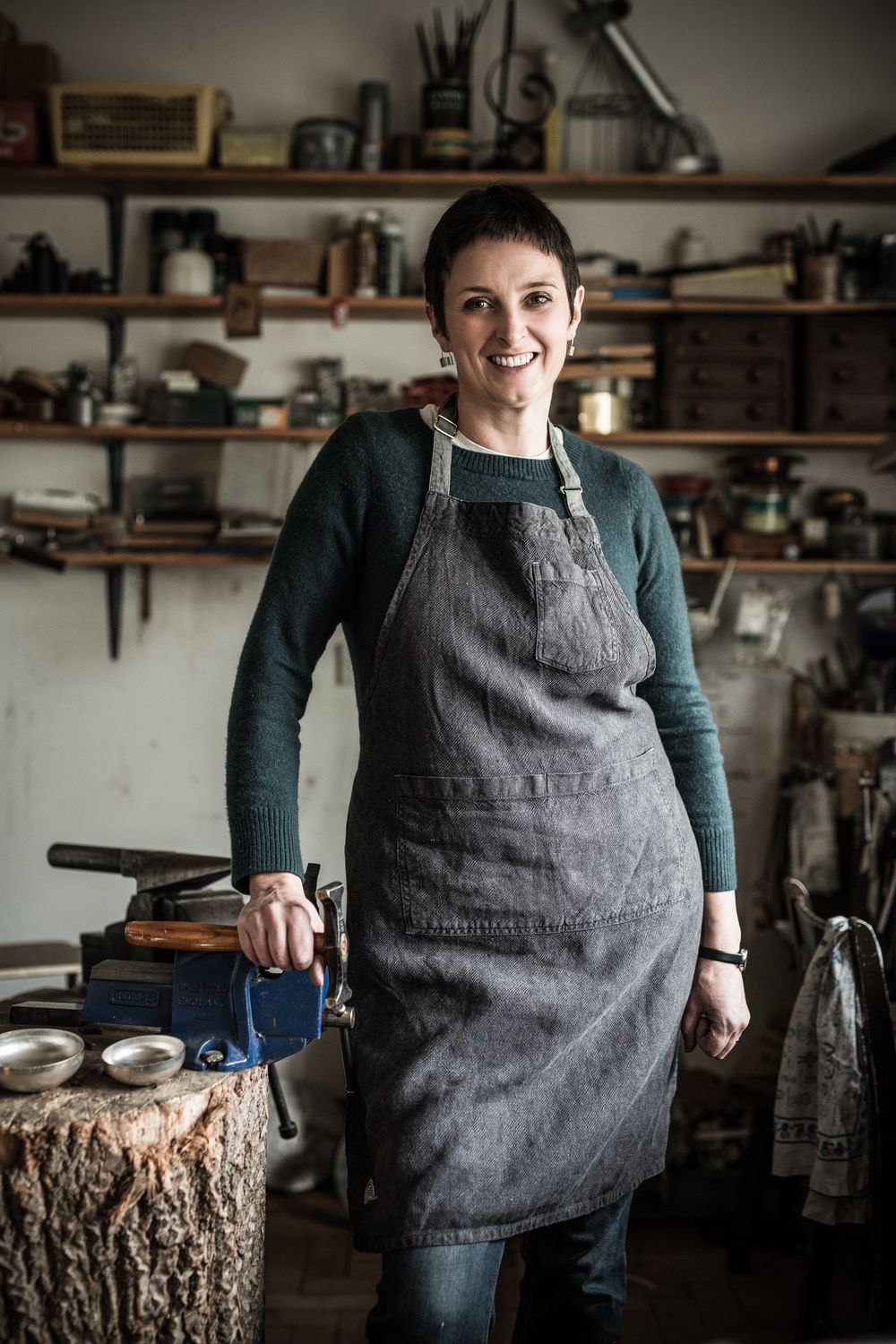 Growing up in Northern Ireland to a silversmith father and an enameller mother, Cara Murphy was immersed in creativity. It was inevitable, then, that she would go to art school, but she didn’t know if she would choose the same path as her parents. She initially toyed with graphic design, before realising that the act of making was what she was really passionate about. After studying silversmithing and jewellery in Glasgow and London, she returned home to Northern Ireland. She now works alongside her father in a shared workshop, creating nature-inspired silver tableware, often with enamel accents, after learning her mother’s skill of enamelling.
