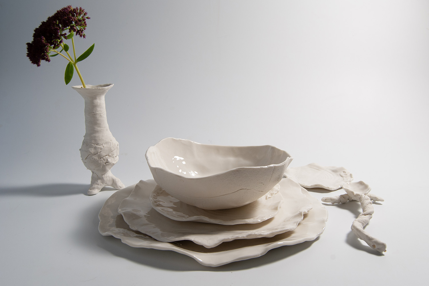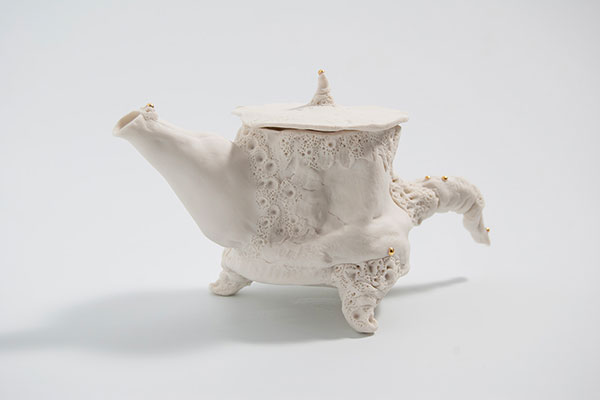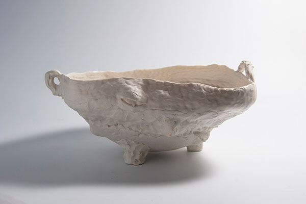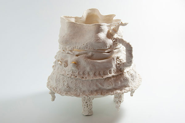 Valerie Ceulemans became a ceramicist after practising as a dietitian for years. She built a studio in her own garden, situated in a quiet Belgian village. From there she makes sculptures and tableware objects – mostly with porcelain, sometimes with clay. “I also like to travel, to discover different worlds and ways to enrich my working processes,” she says. In particular, a trip to China left an indelible impression on her. With her artwork in a unique style, labelled as ‘precious baroque’, Valérie expresses her feelings about the dualities that exist in humans. “The curves of my creations make them sensual, poetic and above all, alive. The folds, seams and holes are the stigma of life, giving them a somewhat aggressive edge.” This way, she tells intriguing tales of the good and the bad, the soft and the rough, the sensible and the reckless in people.