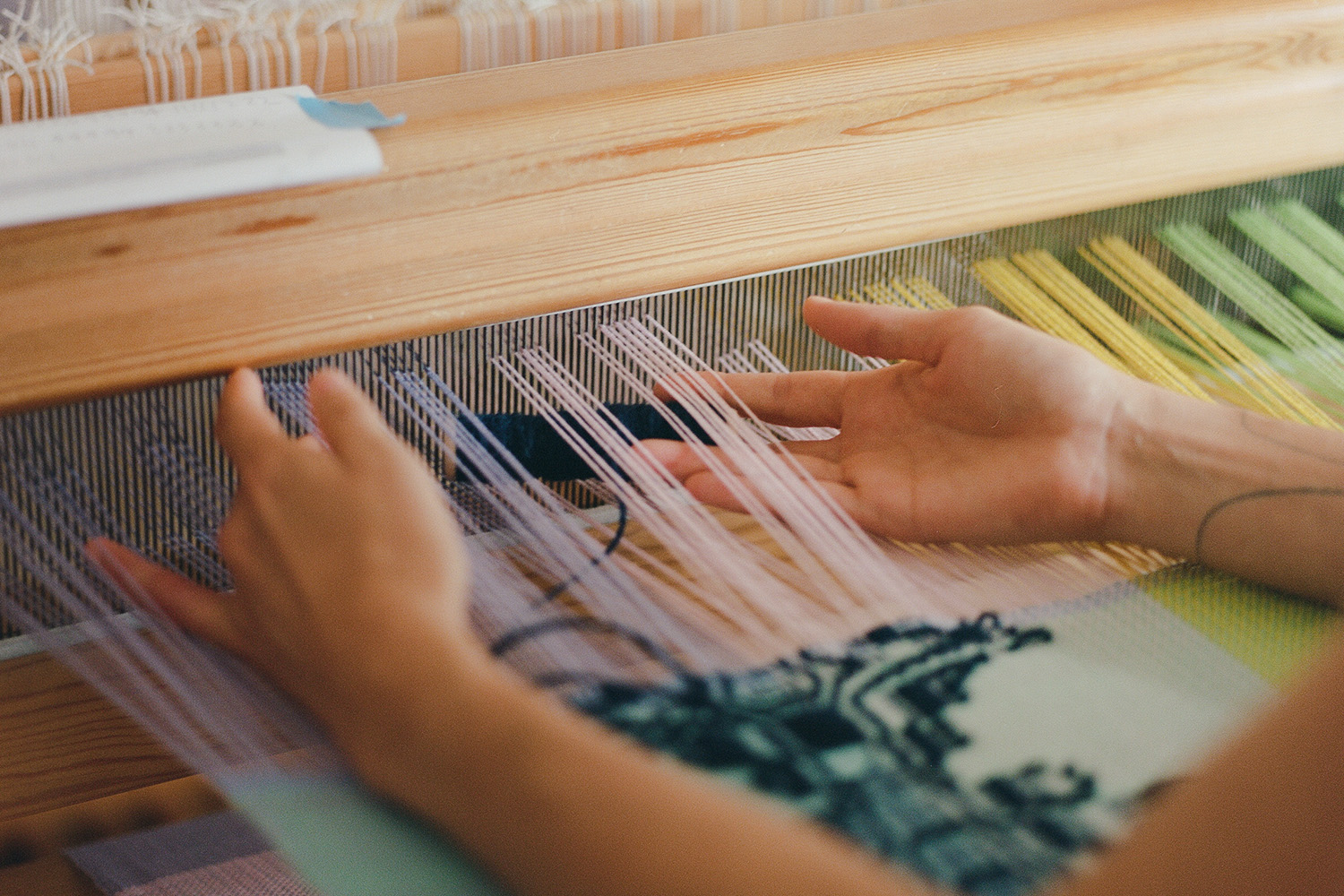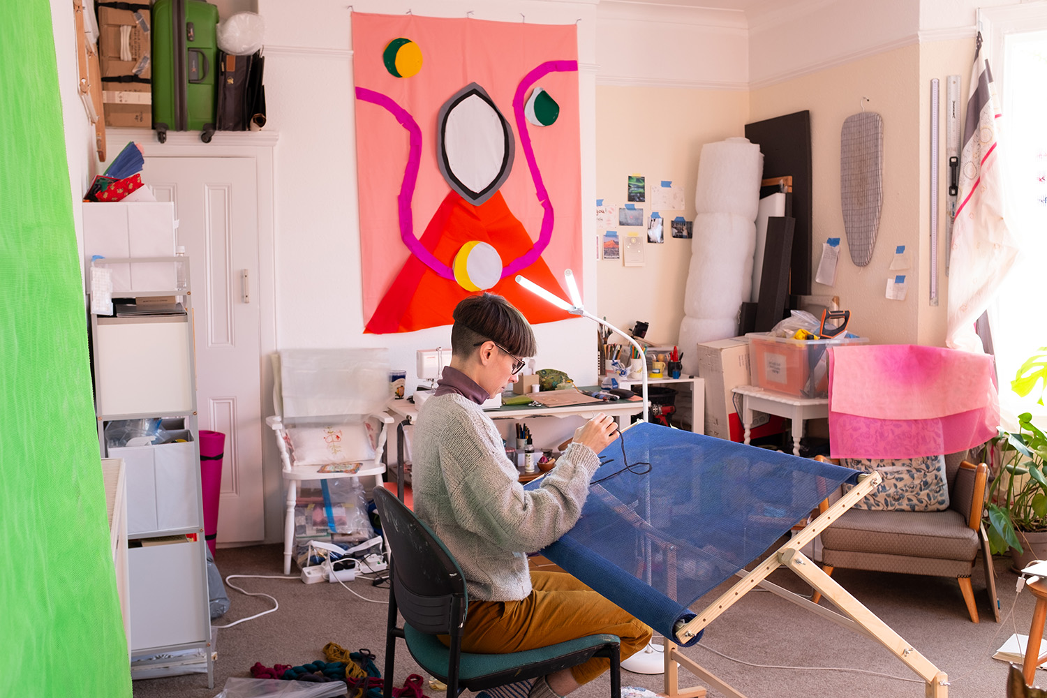 The theme of Cecilia Charlton’s journey towards weaving and embroidery has been 'discovery'. In the early part of her life, she was guided towards engineering school, but almost immediately dropped out to spend years travelling, pursuing jewellery making and learning the craft of pottery. After this period, she studied painting at university in New York. While studying, she discovered a passion for repetitive patterns on a trip to Italy, admiring ancient mosaics. This is where she came across the Bargello embroidery technique and immediately felt attracted to it. It is a stitching technique that is made to create intricate patterns, which is the heart of Cecilia's current work.