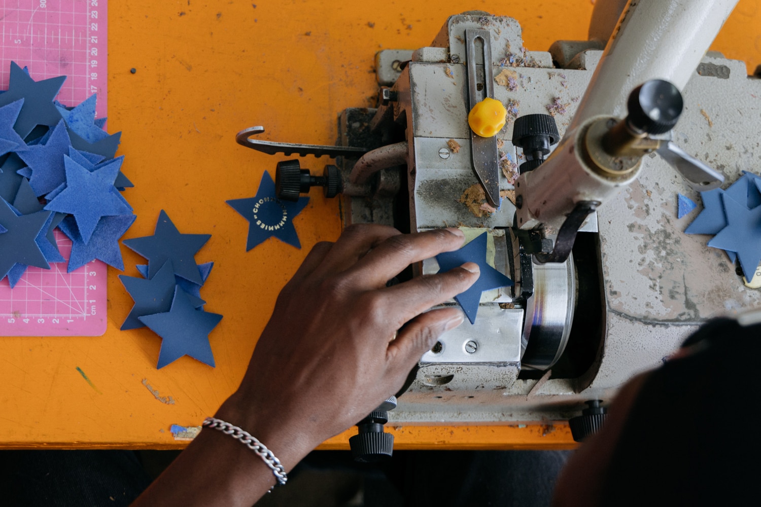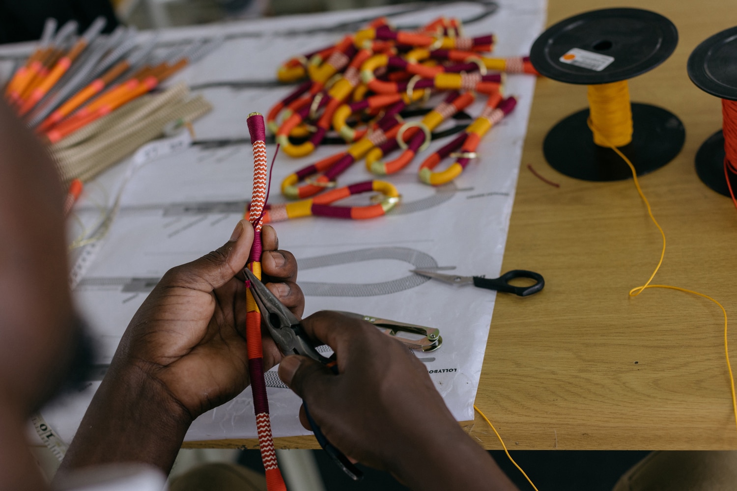 Chommies pet accessories feature leather offcut flowers, brightly coloured rope whipping and shiny brass buckles. Nathalie hires friends and family, which supports trust and accountability while reflecting the atelier's name, a local term meaning 'friends'. The atelier provides employment, skills development and a new model of production based in Cape Town.