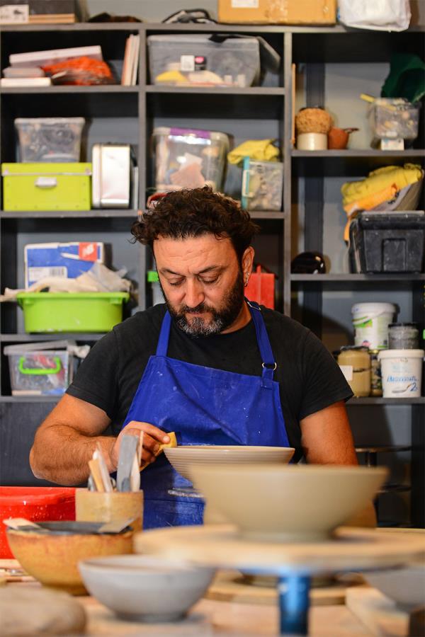 Ilias Christopoulos knew from the age of thirteen that he wanted to practise the art of ceramics, when he took ceramics lessons at school in Kalamata led by Iro-Myrto Magkanari and Saimon Hill. Later, Ilias also took ceramics courses in Athens before returning to his hometown where he opened his own workshop and started teaching ceramics to both children and adults at the same school where he once was a student. “Teaching ceramics is very important to me because I love to transfer my knowledge of the art of ceramics to others. Teaching children is even more interesting as you can see how purely, spontaneously and freely they are able to create without being confined by any rules or fear.”