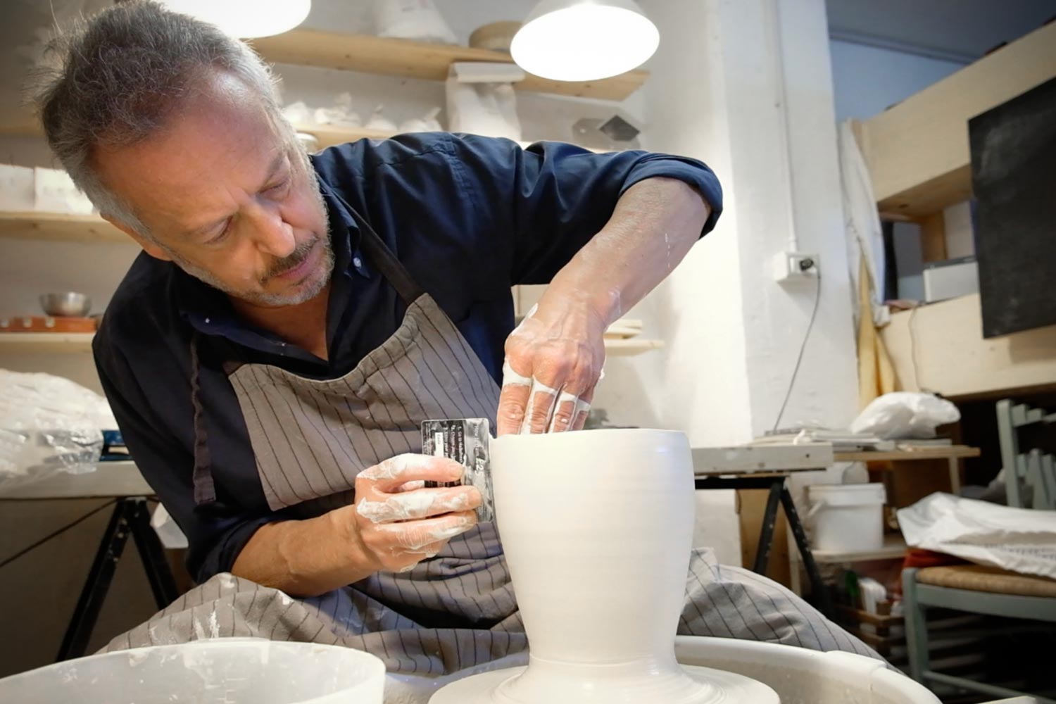 Fabio Ciancaglini came to ceramics later on in life. After a master's degree in architecture, he attended the Albertine Academy of Fine Arts in Turin and worked for a while as a painter and engraver. Back then, the only ceramic pieces he knew were the traditional hand decorated Italian ones, which he didn’t like very much. Ten years ago, though, he discovered the Oriental style and he fell in love with its formal simplicity. That’s why he decided to learn the fascinating art of ceramics. He took private classes for two years and then he went to La Borne in France, for an internship with master Françoise Blain. "Ceramics cannot be improvised: many years later, I feel that my training is still in progress," he says.