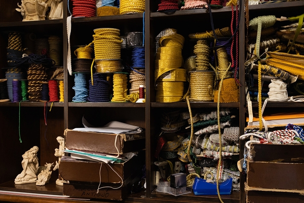 Cordonería Alba is a historic workshop that opened its doors back in 1904, now in the hands of Jesús Espinola Cantero, godson of one of the founder’s children. The atelier and shop still makes precious adornments, indissolubly linking its activity and raison d’être to the devotion for Semana Santa of Seville’s community. The craft of cord making and trimming has a guild that dates back six centuries and continues to be preserved. This tradition is highly respected within the walls of Cordonería Alba, where skilled hands work with tools, techniques and machines dating hundreds of years.