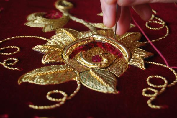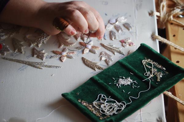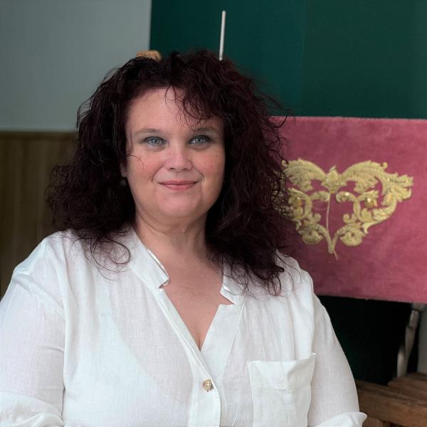 With a degree in fine arts, Cristina Badillo Castillo was impressed by gold embroidery from the first time she went to the workshop of an embroiderer friend. She was 18 years old. "After graduating from my degree I decided to learn this craft because of its beauty and the variety of works I could achieve with this technique," says Cristina, who affirms that art has always been part of her life. She began training as an embroiderer first with Juan Rosen and later in the Sevillian workshop of Fernández y Enríquez. In 2009, Cristina opened her own workshop and her first creation was a scapular. Her specialty now is gold and silk embroidery. One of the highlights of her working life was making the banner in gold and silk for the brotherhood of Mary Magdalene of Velez Málaga.