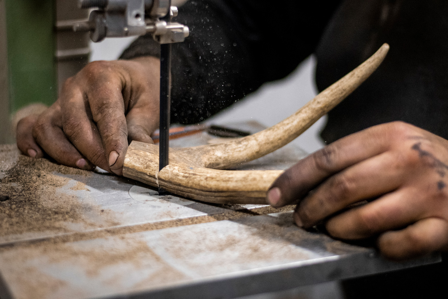 Around 2013, Dalibor Trkulja started making knives as a hobby. Today, with the help of his wife, he runs a successful bladesmithing business and sells his products in Serbia and abroad. Dalibor is from Inđija, a town in northern Serbia. He makes unique handmade blades in the traditional way, by forging in a forge fire. His blades are generally made of Damascus steel, a material produced by joining two types of steel by forging, which creates beautiful patterns. Besides knives, Dalibor also makes custom axes, belt buckles, and bottle openers. His wife makes knife sheaths out of leather. So far, he has not had any apprentices, but due to the numerous enquiries he receives, he is thinking of hiring someone eager to learn about his craft.