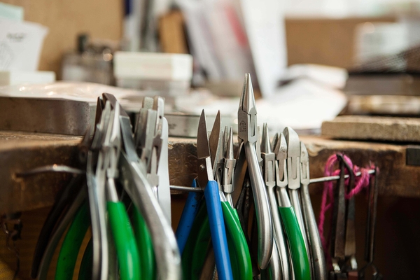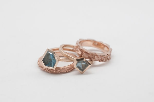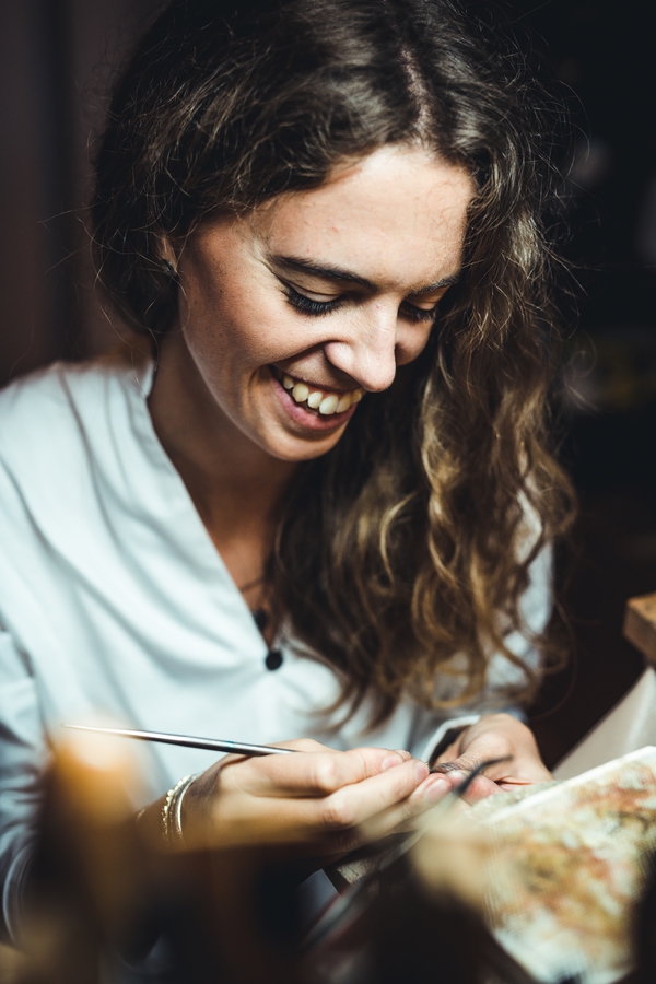 Elisabeth Habig studied millinery because she has always liked to work with her hands. But the experience of soldering a piece of wire into a ring made her change her path. "Creating the ring without seeing its beginning and end afterwards was a magical experience," she says. A passionate collector of structures, Elisabeth loves casting techniques in all their variations, including sand and cuttlefish bone casting. She experiments a lot with organic materials to develop her unique design language. Her Globetrotter collection became a trademark: the series, consisting of bracelets, rings, necklaces and earrings, is inspired by the ancient Etruscan granulation technique, in which tiny metal beads create a relief reminiscent of geographical maps.