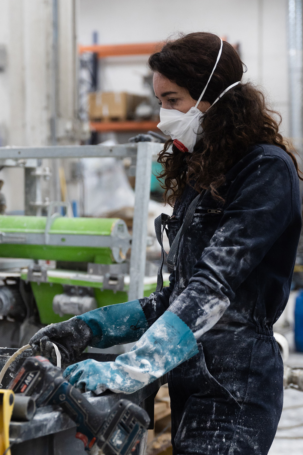 Artisans, designers and researchers, Élodie Michaud and Rébecca Fezard are the founders of Hors-Studio, a workshop and lab that turns waste into new and biodegradable materials to create artistic installations and design objects. This innovative concept was born of their shared interest in the ennoblement of materials and textiles, and their real awareness of the impact of the designer's work on the environment. Their research focuses on a wide range of industrial and natural waste materials: shells, neoprene, cellulose, to name but a few. One of Hors-Studio’s signature developments is the leatherstone, a biomaterial made from leather scraps and biodegradable glue, which can be sculpted, engraved, 3D printed, and applied to various finishes.