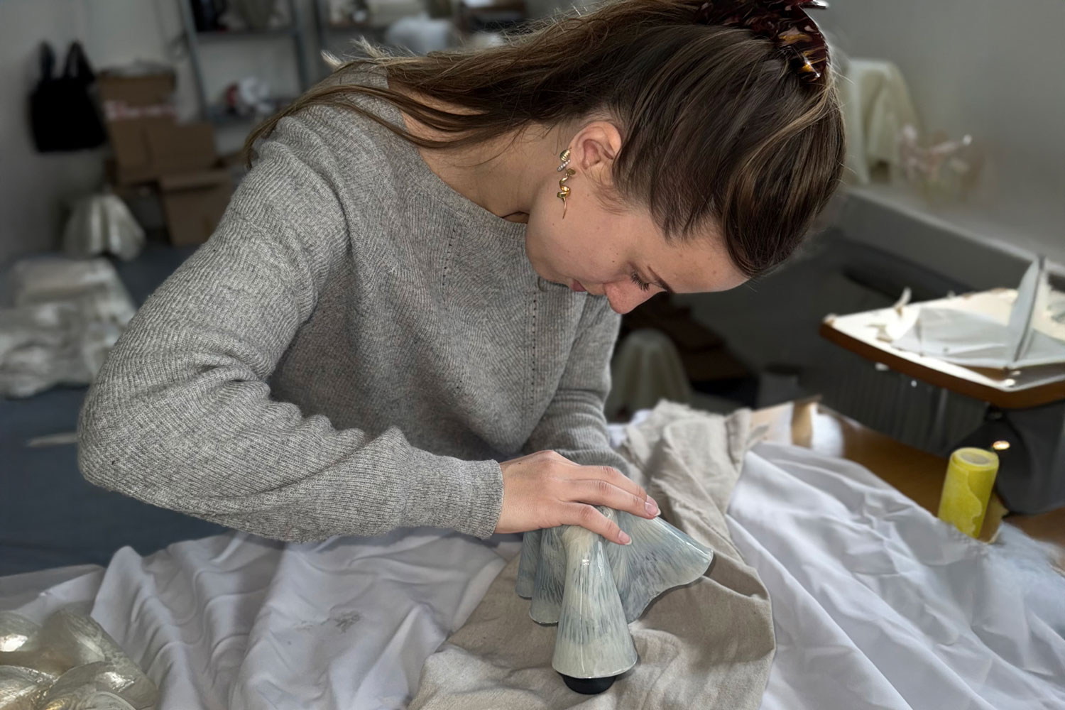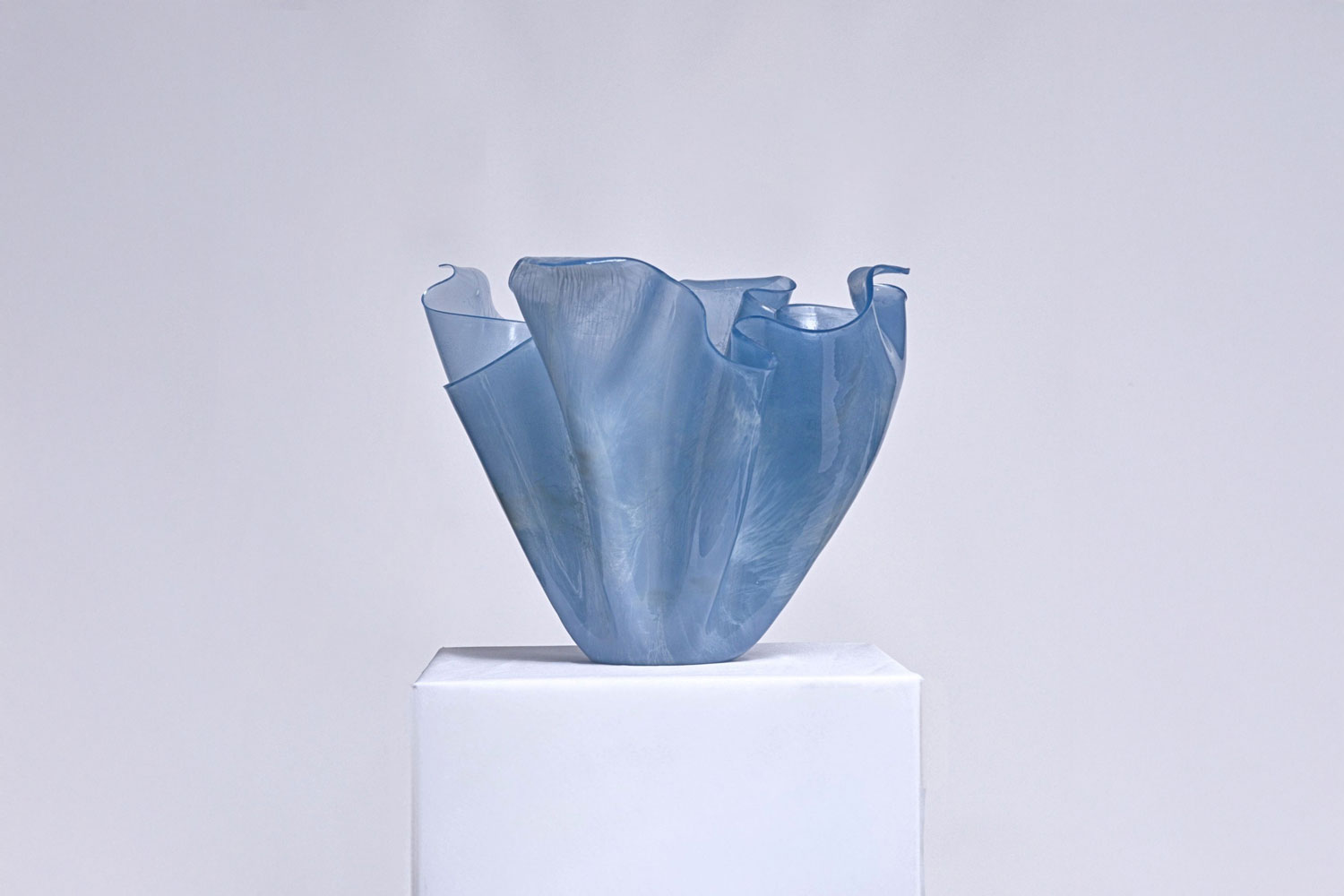 With marble-like depth and translucency, Emilie Jensen sculpts biobased resin sheets into vases, lighting, artworks and plates. "Through my work, I explore the artistic potential of biobased resin, an environmentally friendly material I describe as 'glass, but not glass.' Its ingredients are derived from renewable, natural resources," she says. Unlike traditional resin, Emilie's low-carbon biobased alternative, requires no heat, and is ecologically sourced from a family-owned producer in France. "Mastering its chemical properties drives bold experimentation in this emerging field, where even fragments of prototypes can be transformed into new, eco-conscious and visually rich works of art," she explains. Emilie works out of her workshop, Waves Studio, which she established with her partner Kasper Rasborg in Aarhus in 2024. Her bespoke resin plates were commissioned by Copenhagen's two-star Michelin restaurant, Alchemist.