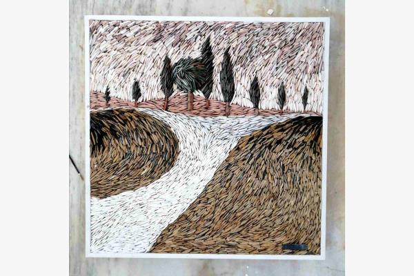 Eva Papadopoulou has found in mosaic her true means of expression. The Greek artist brings a new dimension to the traditional technique of this ancient craft by exploring the notions of movement and volume. Her mosaics are made up of hundreds of marble fragments in different sizes, which she assembles together in relief forms. Inspired by the abundant beauty of nature, her mosaic paintings often reflect moments in time; quiet landscapes bathed in a particular light she has captured. The motion created in each scene gives an impressionistic character to her work. Eva draws on her years of experience in her family's art foundry, where she gained valuable hands-on expertise working with various materials and was introduced to sculptural art in its diversity.