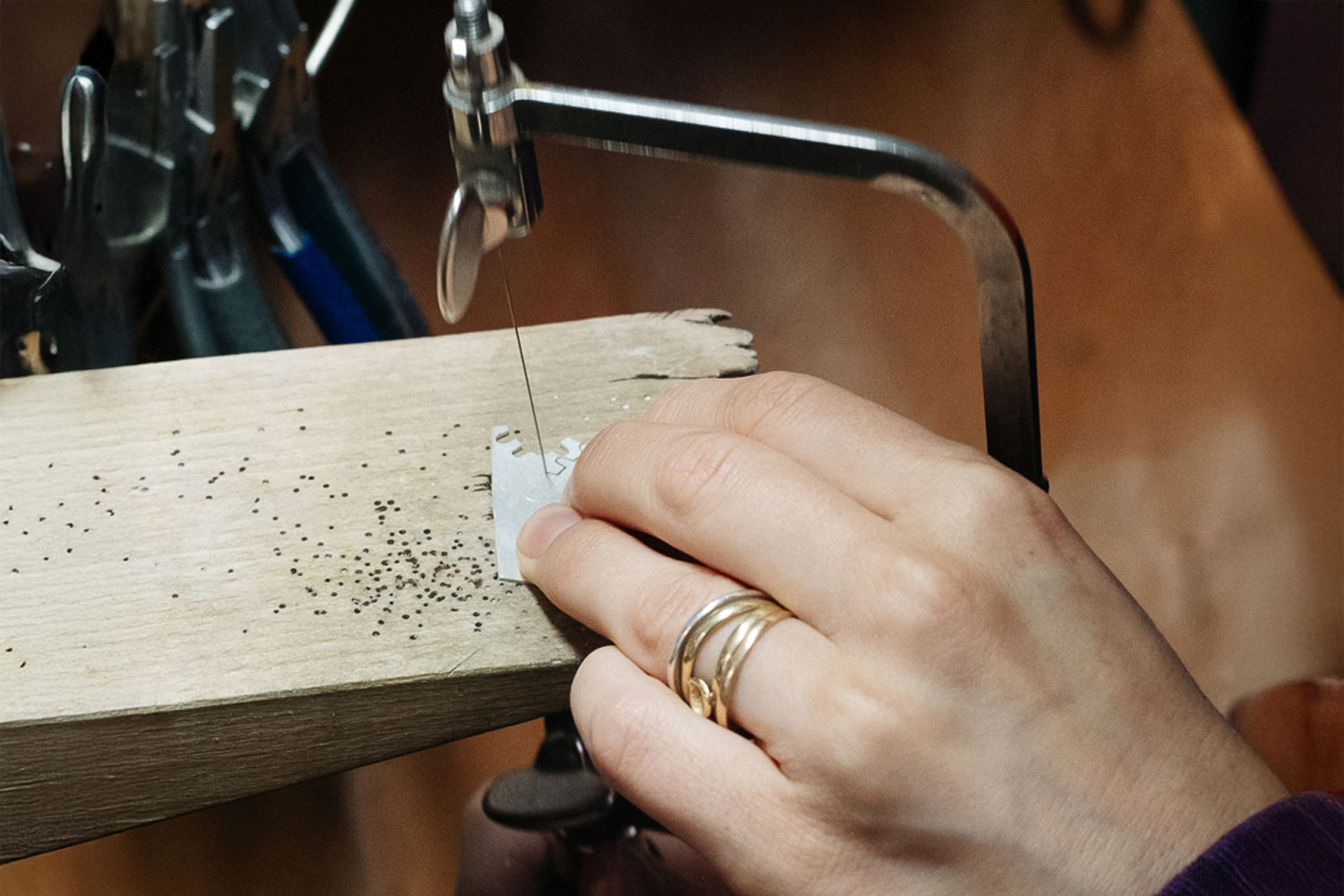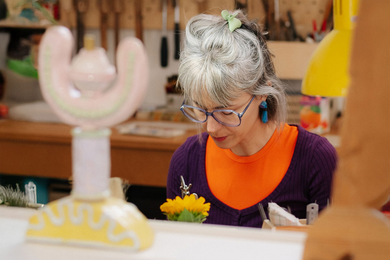 Eva Burton's extensive training in Mexico, Argentina, Spain, Germany and Austria has shaped her multicultural, playful and hybrid jewellery practice. She brings together traditional jewellery techniques with experimental approaches, which allow metal, stone, porcelain and wood to reveal their own character. "Through jewellery, I explore the relationship between the body, emotion and matter. Each piece is born from a direct dialogue with the materials and a deep respect for manual processes,” Eva says. She completed a bachelor's degree in artistic jewellery at Escola Massana in Barcelona and earned a master's degree from the Jewellery and Gemstones department at Trier University of Applied Sciences in Idar-Oberstein, Germany. Later, she moved to Bilbao and founded Flashera, where she was able to balance jewellery making, motherhood and teaching at her own pace. “I think of jewels as small symbolic territories – poetic objects that connect technique with emotion,” Eva explains. “Jewellery accompanies the wearer by becoming a bridge between inner and outer worlds."