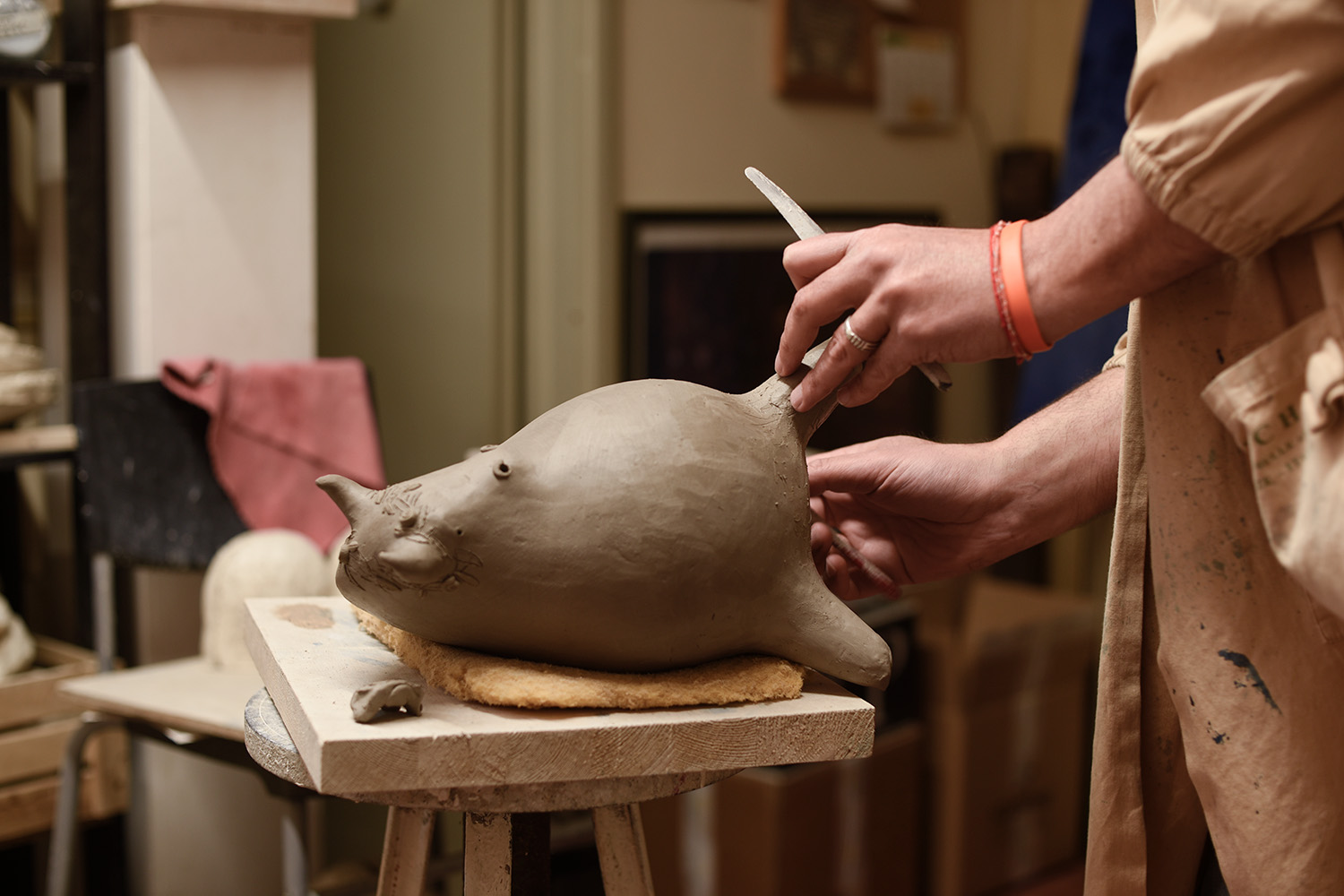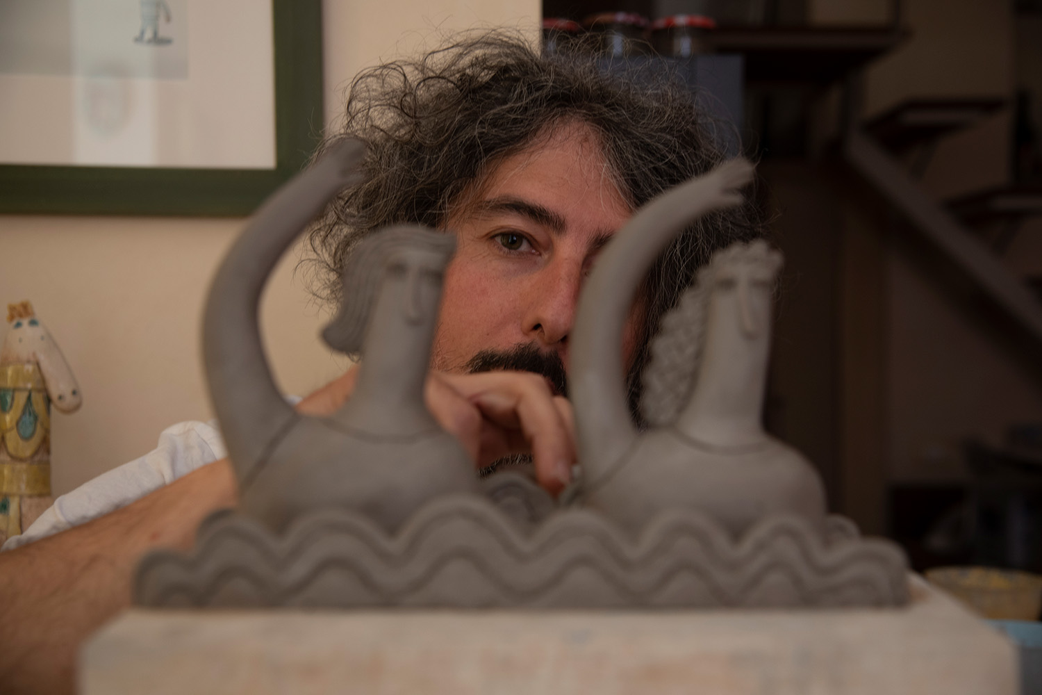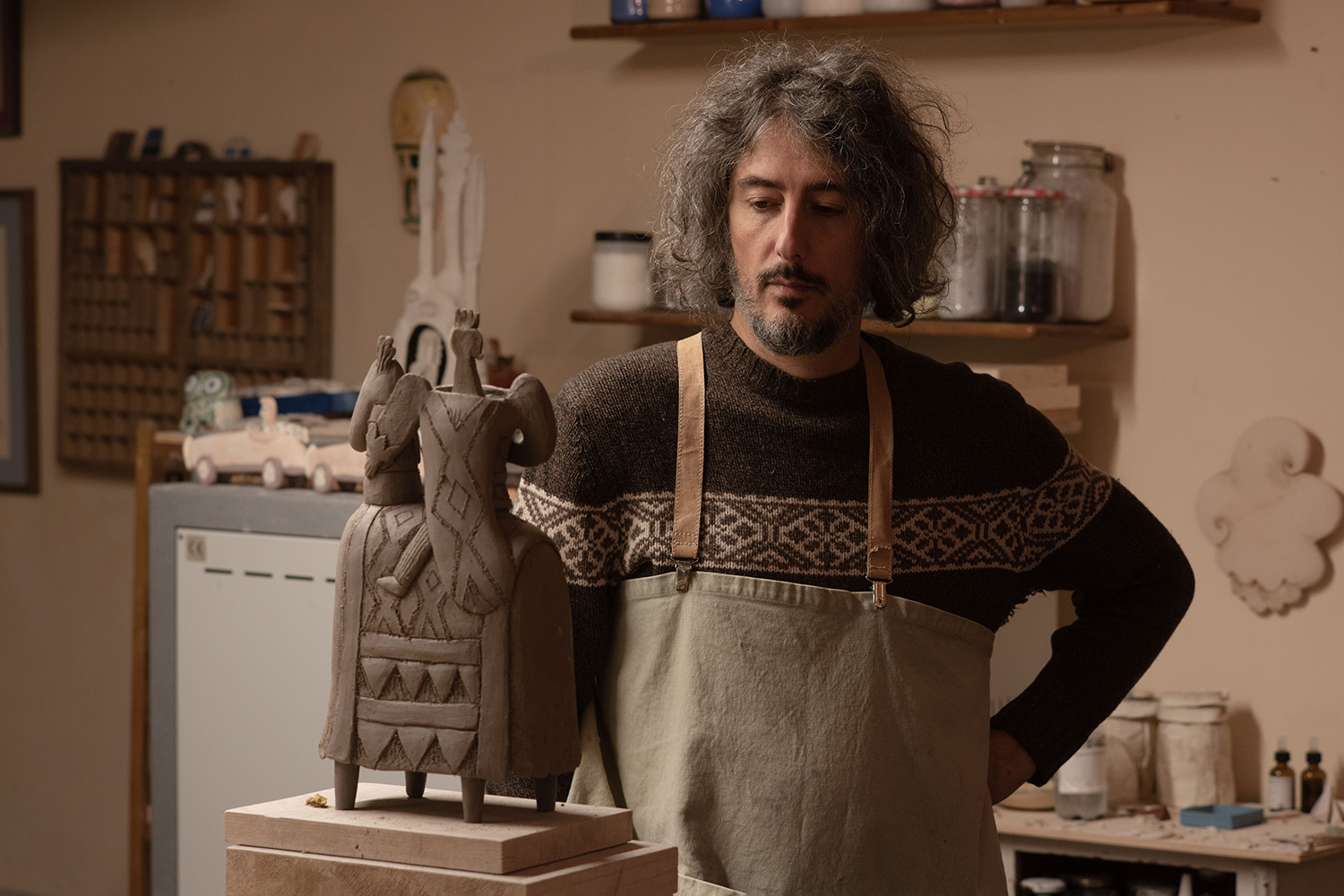 As a child, Michele Fabbricatore had already discovered his artistic vocation and crafting skills, as he spent hours and hours creating miniature sculptures with play dough and, later on, with clay. Several years have passed since then, involving higher education, professional training both abroad and in his home country, the opening of his own studio, and many international exhibitions. Despite all this, Michele has never lost his attitude of child's play. Both his work and his words reveal the same dreamy and poetic approach that a very passionate child would put into their creations. Over the years, Michele has developed a signature style: his work juxtaposes illustration and ceramics, which he defines as “the synthesis between painting and sculpting”.