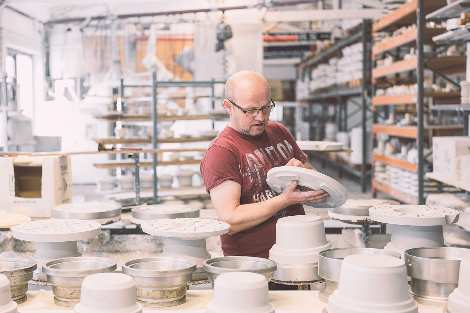 The clean lines and understated elegance of Figgjo products are a result of forms following function and design collaborations with prestigious chefs to make sure that the products match their sophisticated needs. The factory buildings have been recently upgraded with state of the art machinery, taking a tour reveals the handiwork still needed to make beautiful, functional, durable porcelain: some products require as many as 52 different operations by hand. The manufacturer also hosts a small museum and a factory outlet with all Figgjo classics as well as new designs, specially made for the boutique.