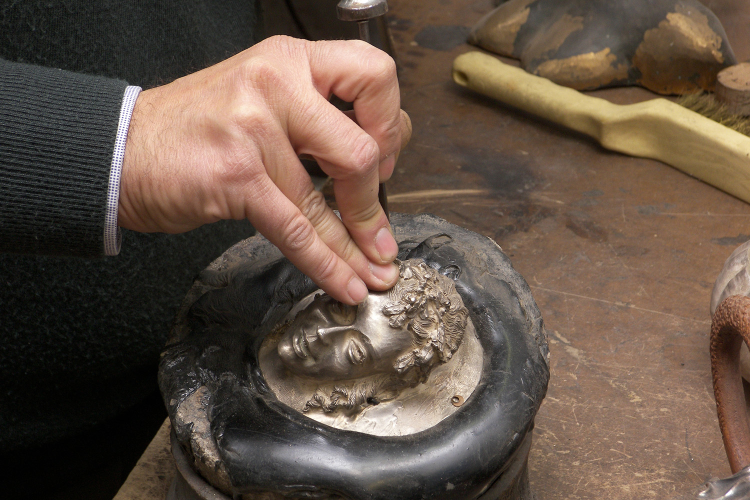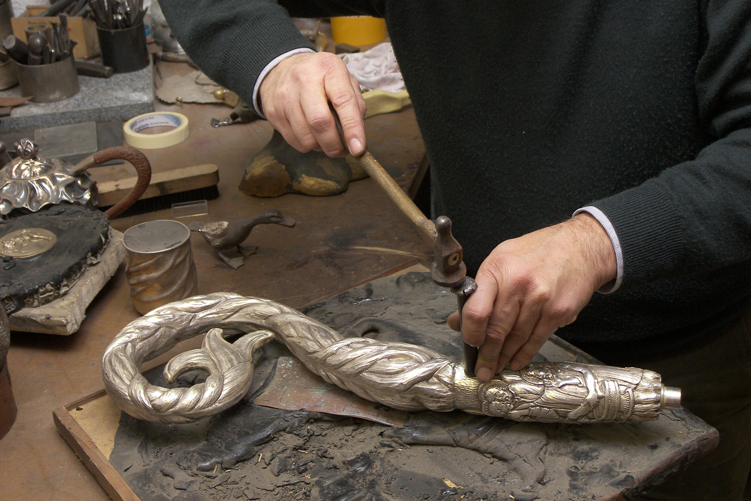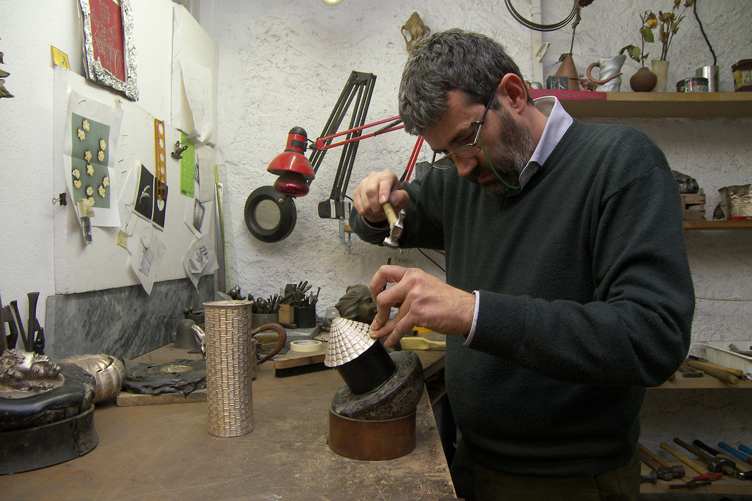 A true master of the art, Franco Blumer's craftsmanship ranges across the worlds of silversmithing and goldsmithing. In his workshop close to Bergamo, he creates refined jewels and rare, valuable objects of sacred art. He also restores antique treasures for important clients such as the Duomo in Milan. The gilding of the Madonnina, the symbol of Milan that watches over the city at the top of the cathedral, is the result of his savoir-faire. An extremely sophisticated chiseller, after graduating at CAPAC (Polytechnic of Trade and Tourism) he trained in important Italian workshops and foundries, learning many techniques, some almost extinct. Franco became the custodian of an ancient tradition, which allows him to work on restoration with the awareness of an artist who relates to colleagues from the past.