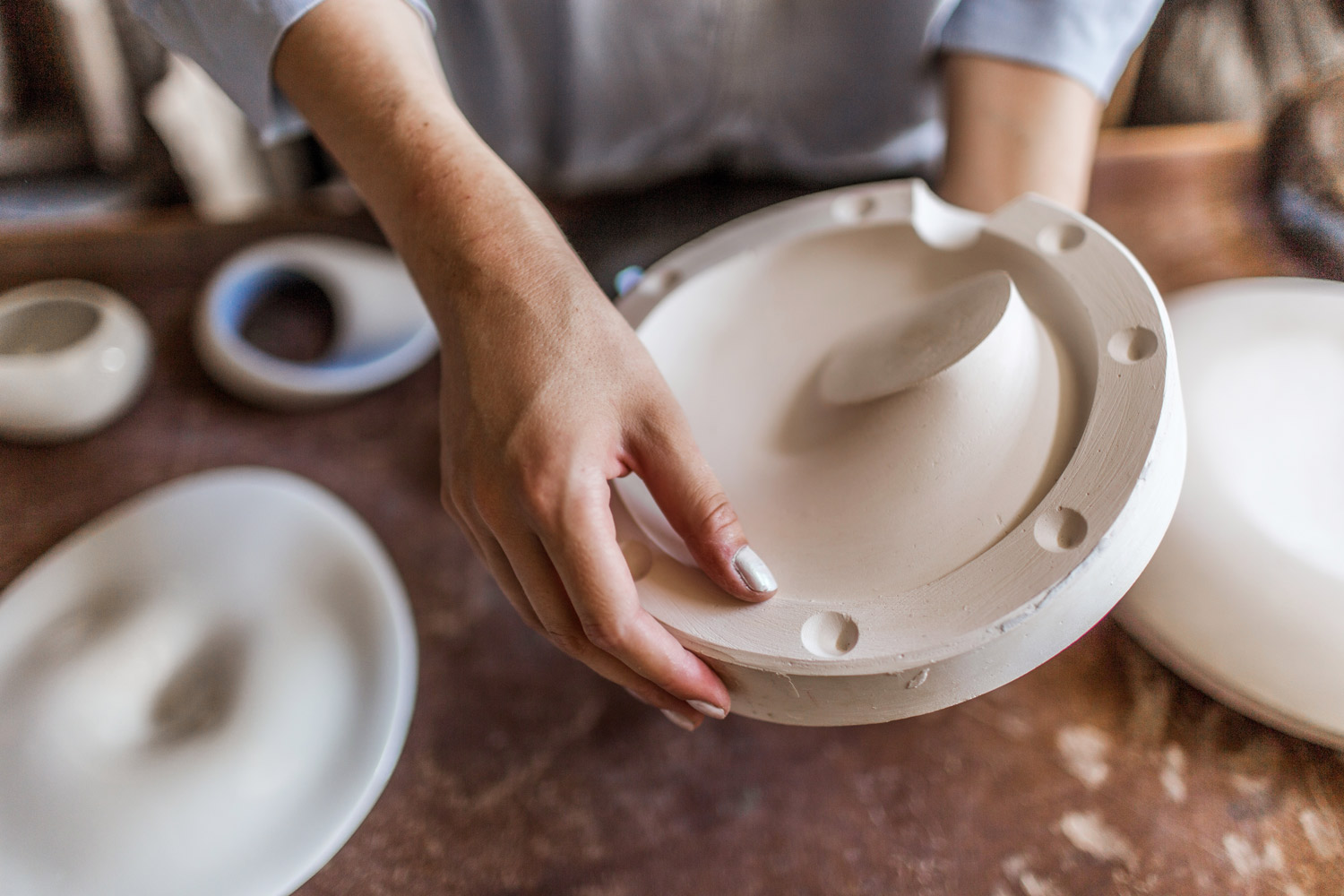 As a child Fruzsina Fülöp was an introvert, therefore she always found it easier to express herself through creating something with her hands than playing with words. She realised in her early teens that 3D is far more exciting for her than 2D, so she turned her attention from painting to sculpture. She graduated from the Moholy-Nagy University of Art and Design in Budapest and for her masters she dreamt of a tableware collection which would be designed based on the current gastronomy trends. For this purpose she collaborated with a confectionery chef, and created porcelain dishes with delicate curves to explore how various dessert types may be served. “My ambition was to find the perfect harmony between food and wares. It’s almost as if I created the canvas for the chef to paint on it.”