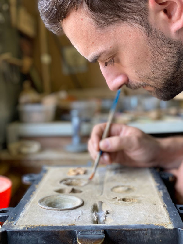 Stepping into the Fundação Ricardo do Espírito Santo Silva (FRESS) Azurara 16th century palace is a historical voyage to discover the richness of ancestral Portuguese decorative arts and crafts. The mastery of woodcarving and cabinetmaking is evident in the woodwork workshop. The metalwork workshop is unique with its ancestral sand-casting technique of brass and bronze, refined chiselling of tinwork and delicate application of gold leaf by a master gold beater. The decoration and book binding workshop are one of the few remaining in Europe while the decorative painting atelier uses rare processes with fine burnished gold and silver plating.