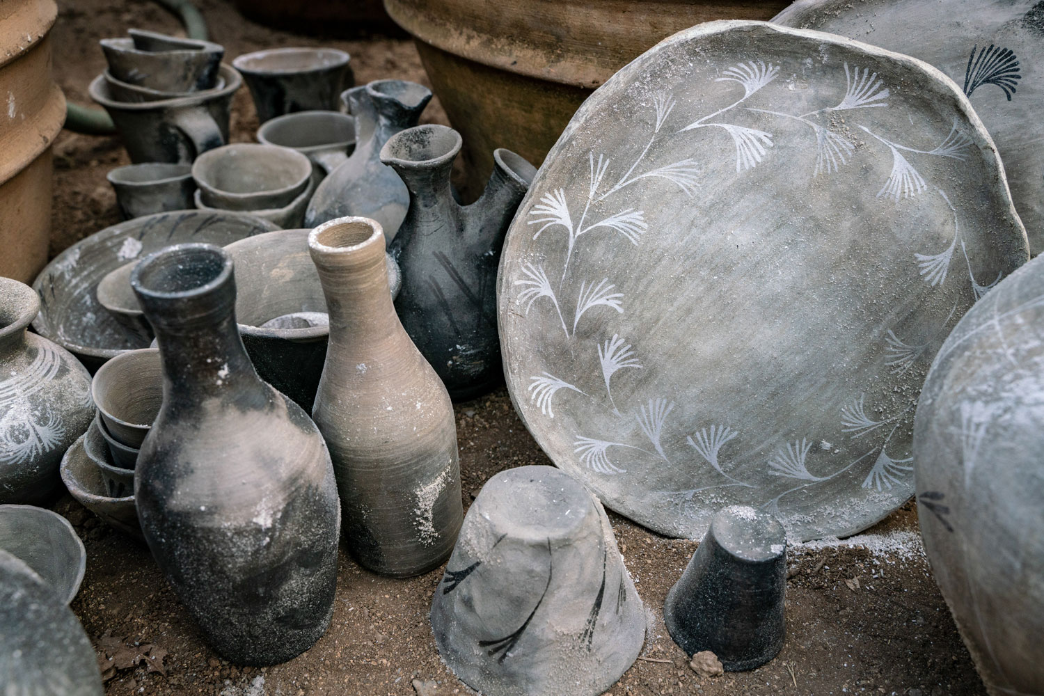 Giorgis Dalamvelas was born in Margarites in Crete, a place with a long tradition in ceramics. His father was a potter, and Giorgis discovered the craft when he was a young boy, playing with clay alongside the artisans of his village. In 1991, he studied ceramics in Athens and then opened his workshop, Keramion, in 1996. Mariniki Mania studied conservation of antiques and works of art, specialising in the restoration of ceramics. "Giorgis taught me the craft of ceramics," she explains. Through their work together, they express their respect for nature and the resources of their land. "We select, design and create each ceramic form jointly," says Giorgis. The couple use mostly local materials and work with ancient techniques and skills. “The form and decoration are of great importance, but also the position of the vessel in the kiln, in order to achieve the final aesthetic result we desire,” they say.
