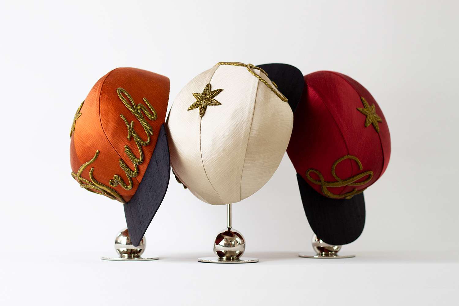 With a background in fashion, a Masters degree from the Italian Istituto Marangoni and celebrated tailoring skills, in 2019 Giuseppe Savoca decided it was time to focus on something specific: couture caps. He says that his hands “were missing some moves” and that he was missing the emotions he used to feel in previous roles. Starting work on couture caps offered him the way to express his creativity and dexterity to combine two different crafts into one. For Giuseppe, the cap is in fact “one of the last fully embraced urban accessories of the early 21st century. I love the idea that it carries a dialogue between history and the future, streets and salons, décor and purpose." He sees it as a shape that has "the magnetism to bring people together through craftsmanship."