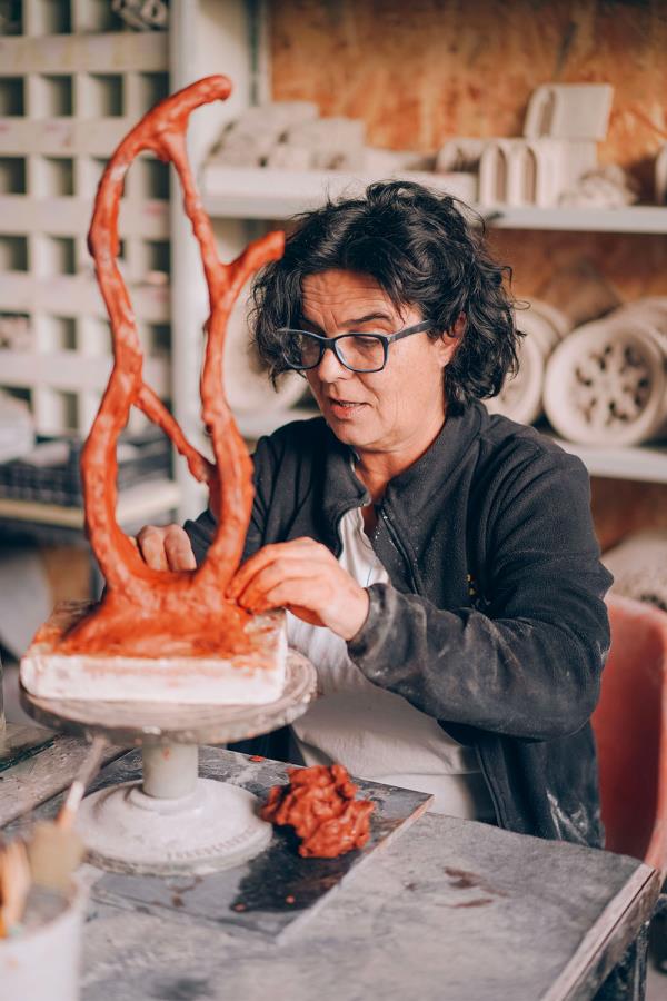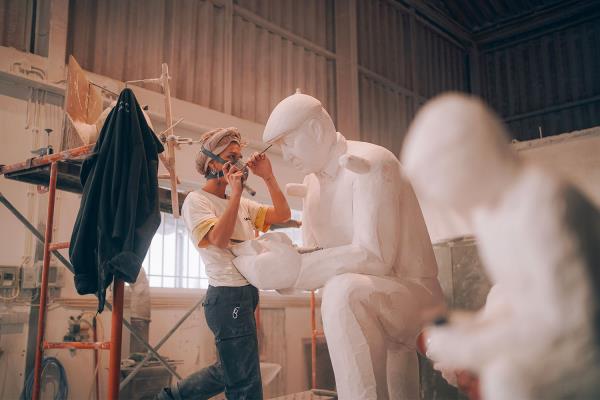 Today the workshop is composed of a multidisciplinary team of stonemasons and sculptors working alongside technical and world renowned artists, designers and craftspeople. They create religious objects, statues, busts, furniture or even unique pieces such as the spectacular bookstand Stoner designed by the Haas brothers for Rihanna’s Ultra Luxury Supreme limited edition book. More recently, Gárgula Gótica launched its own brand MANTA - Handmade Stone Design, bringing the beauty of stone to the home. The head artisan Alzira Antunes participated in the Homo Faber Fellowship programme in 2023-24, welcoming into her workshop an apprentice from France, Corentin Fossemo.