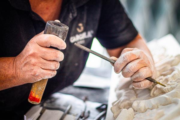 Gárgula Gótica is dedicated to the art of stonemasonry. Founded in 1998 by Alzira Antunes and a partner, their story began within the walls of the Monastry of Batalha, a masterpiece of Portuguese Gothic art with incredible stone lace-work and carvings, commissioned by King João in 1385 to celebrate winning the battle of Aljubarrota. Through conservation and restoration, Gárgula Gótica gained a deep understanding of the raw material and achieved a high level of execution, becoming a national and international reference for artwork in natural stone.