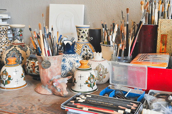 Gurgen and the other artists at Qnar Ceramics are trying to preserve the well known Armenian traditions of ceramics by using Armenian ornaments and patterns. At the same time, they use fragments, faces, flowers, and motifs from their everyday lives, which injects modernity into their designs. The manufacturer mainly works with white clay and porcelain which are painted. They offer workshops and masterclasses to ceramic lovers and believe that it is impossible not to like clay once you try it.