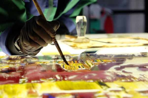 The excellence in craftsmanship is also valued by artists such as Gerhard Richter, who recently collaborated with the esteemed manufacturer to realise a set of church windows. The elaborate concept of the contemporary artist was executed with outstanding expertise, using rare techniques such as etched paintings made on hand blown flashed glass. The result of the collaboration can be admired in the monastery church of St. Mauritius in Tholey.