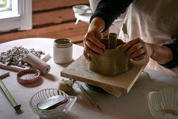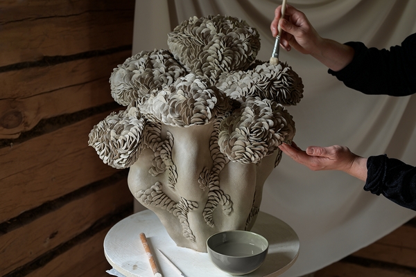 In a world that moves fast, Hanna Heino's sculptural creations invite stillness. Working with her hands is something Hanna has enjoyed from an early age, though her professional life started in interior design and residential development. In 2015, she discovered ceramics and started to learn through experimentation. Four years later she opened her own studio. Hanna grew up surrounded by the silence of snowy hills and fields in blossom. Her work is not linked to a specific territory, but to untouched areas and stillness. As a self-taught artisan she has a strong respect for her material and for traditions and techniques. Hanna also strives for her work to carry a deeper meaning, and the reason why an object was created must shine through.