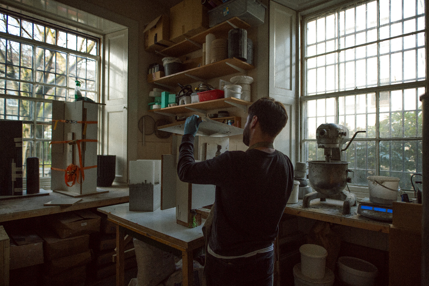Harry Morgan spent his childhood summers working on building sites with his father. Back then he didn’t realise how big a role concrete would play in his life. In his craft Harry combines this strong opaque material with the translucent material that is glass, creating works that speak simultaneously of contrast and of balance. His process involves complex mould making and thousands of tiny glass strings, carefully arranged into geometric forms. Harry’s works stand as monuments to materiality. He tells us he doesn’t enjoy speaking about his work in public, and that he would prefer to be in the studio working. He is a maker who truly communicates through his skill.