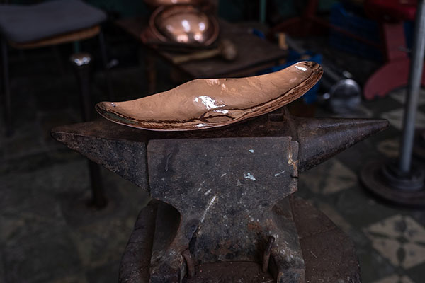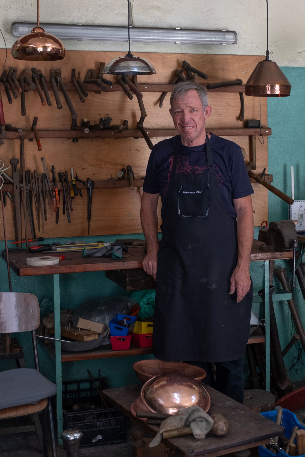Heinz-Jürgen Cramer studied mechanical engineering and worked in the German automobile industry before moving with his wife to Portugal. It was a coppersmithing course with master Analide Joaquim Correia do Carrmo at the Loulé Criativo workshop that opened a new chapter in his life. “I visited the last workshop in Loulé before it closed, such a pity, so I joined the course and stayed," he explains. Today, Jürgen works with his master making traditional pieces but also bringing innovation through upcycling and modernising the design of old pieces. By participating in projects like the Metal in Loulé Summer School developed by Michelangelo Foundation in partnership with Loulé Town Hall, FRESS and Passa ao Futuro, he inspires his students to use the traditional techniques in more modern ways.