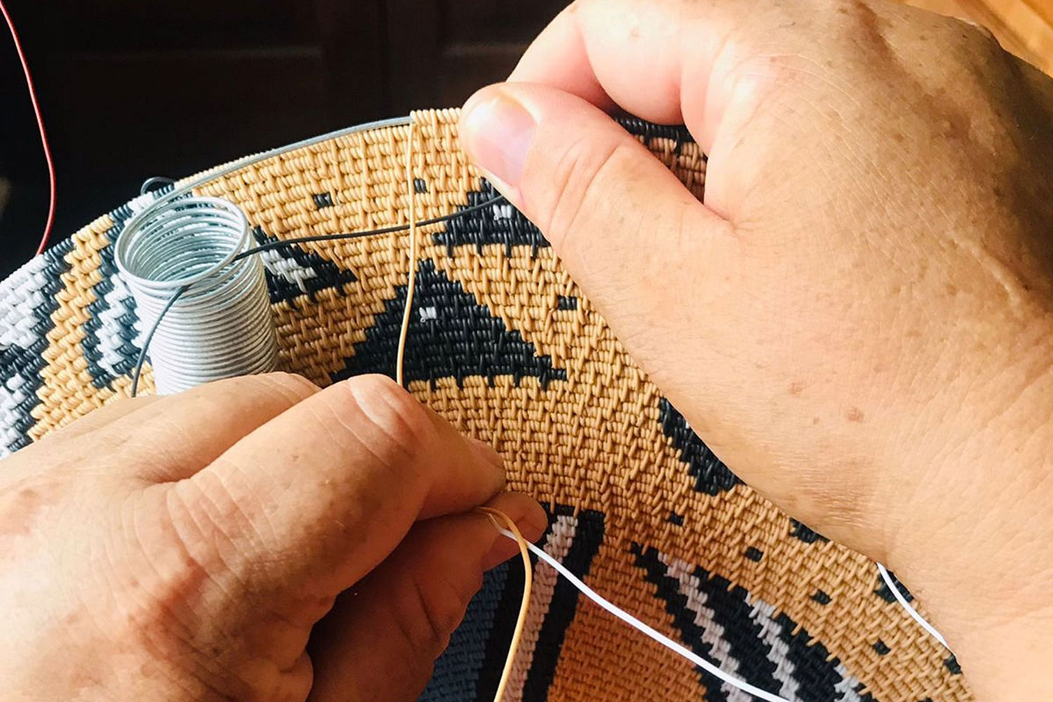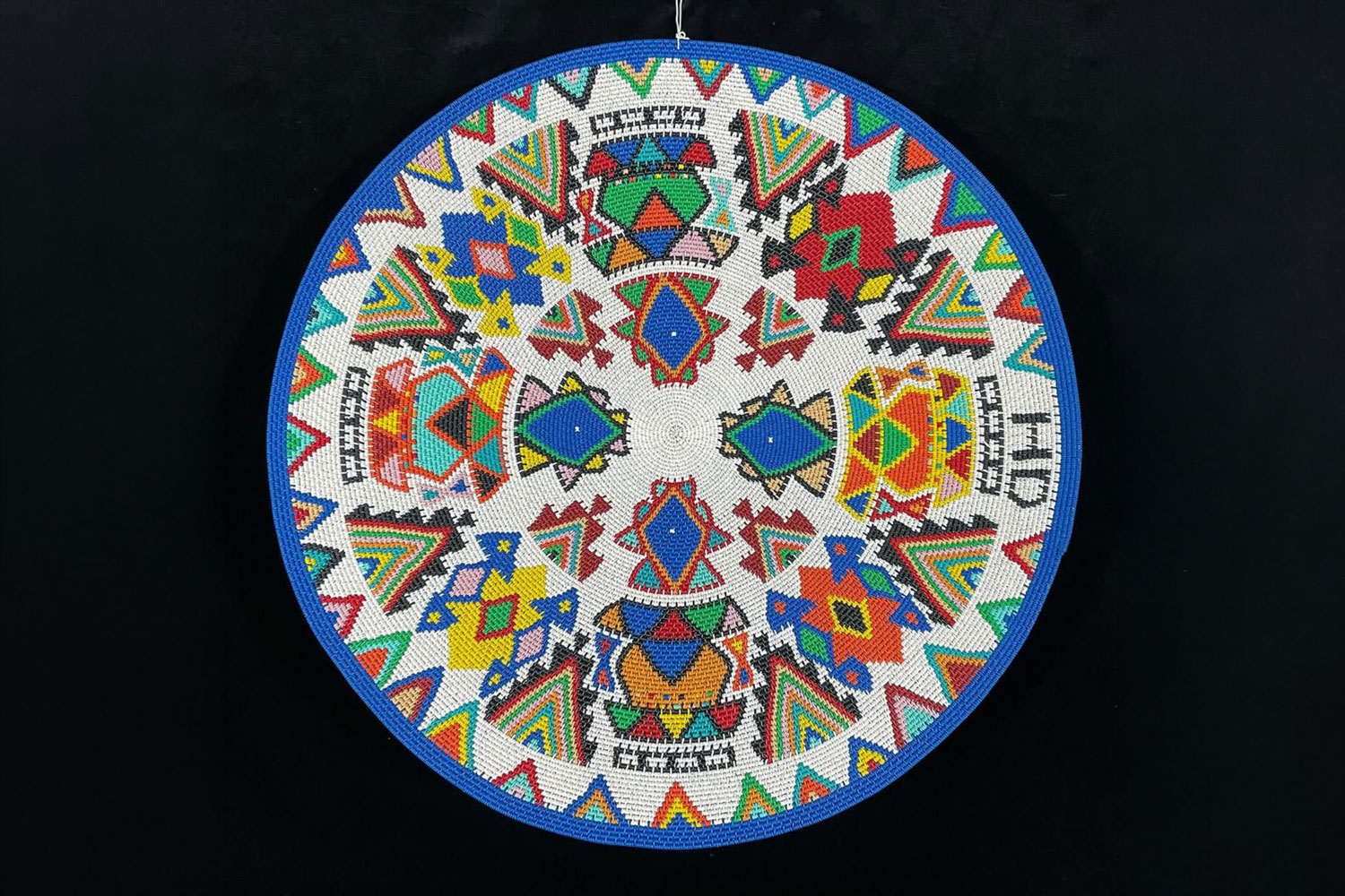 Hlengiwe Dube reinterprets the visual language of her Zulu culture by weaving vivid telephone-wire platters that give a nod to traditional objects such as iziqhaza earplugs and iziNcwadi zoThando love letters. She spent 26 years at Durban’s African Art Centre, where she went from maker to researcher, travelling to rural areas to document the meaning of shapes and colours used by local Zulu masters. “I am trying to reveal the forgotten traditional stitches and patterns to bring back something that had been lost,” she says. Each piece takes Hlengiwe 70 hours to complete, over the course of 18-hour days. She views the rigour of her practice as a lifeline, as she believes her work is therapeutic for her. “My work is what heals me,” Hlengiwe says. Today, she works globally with international museums and institutions such Yale, to ensure that traditional Zulu artefacts are viewed as living symbols of Nguni heritage.