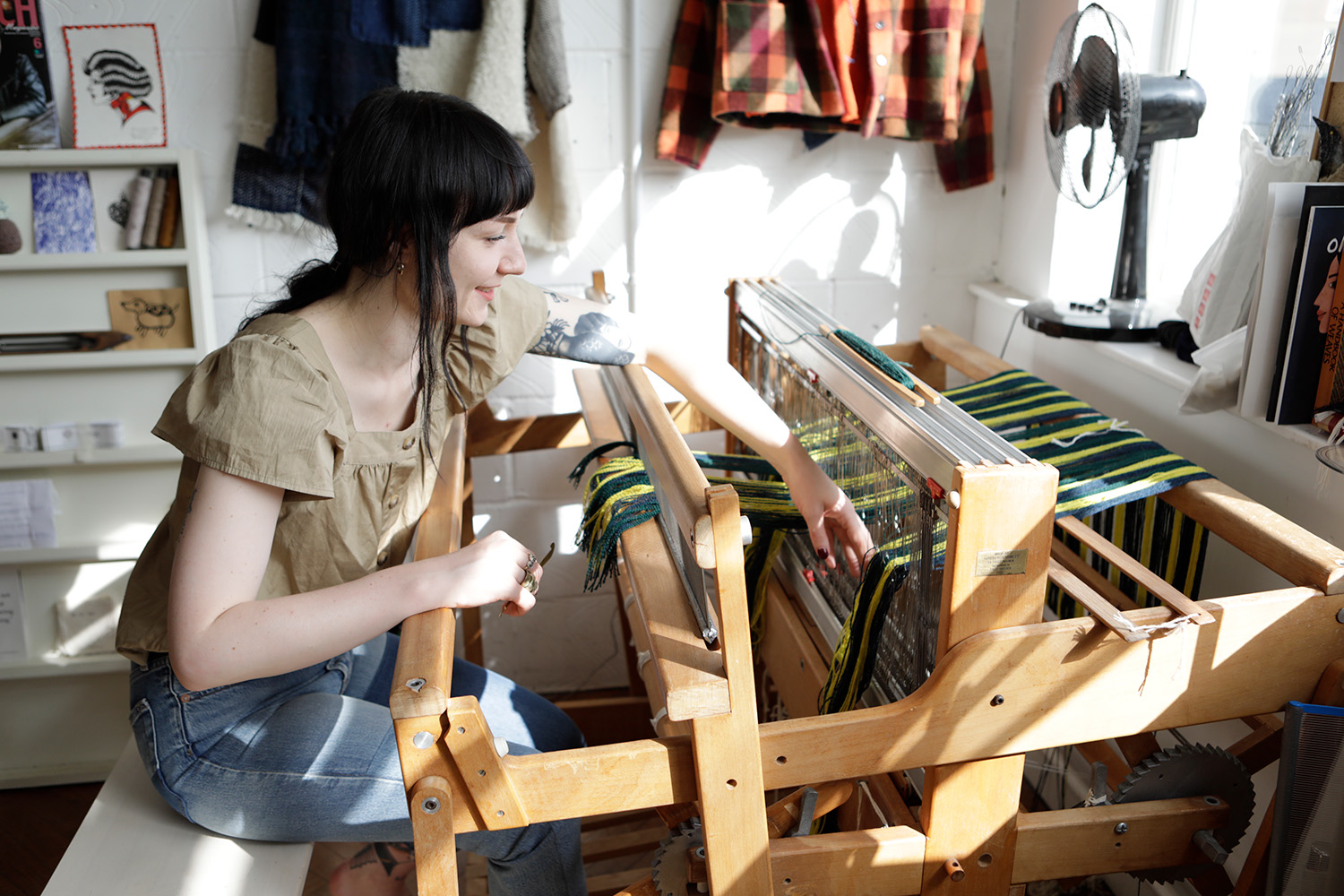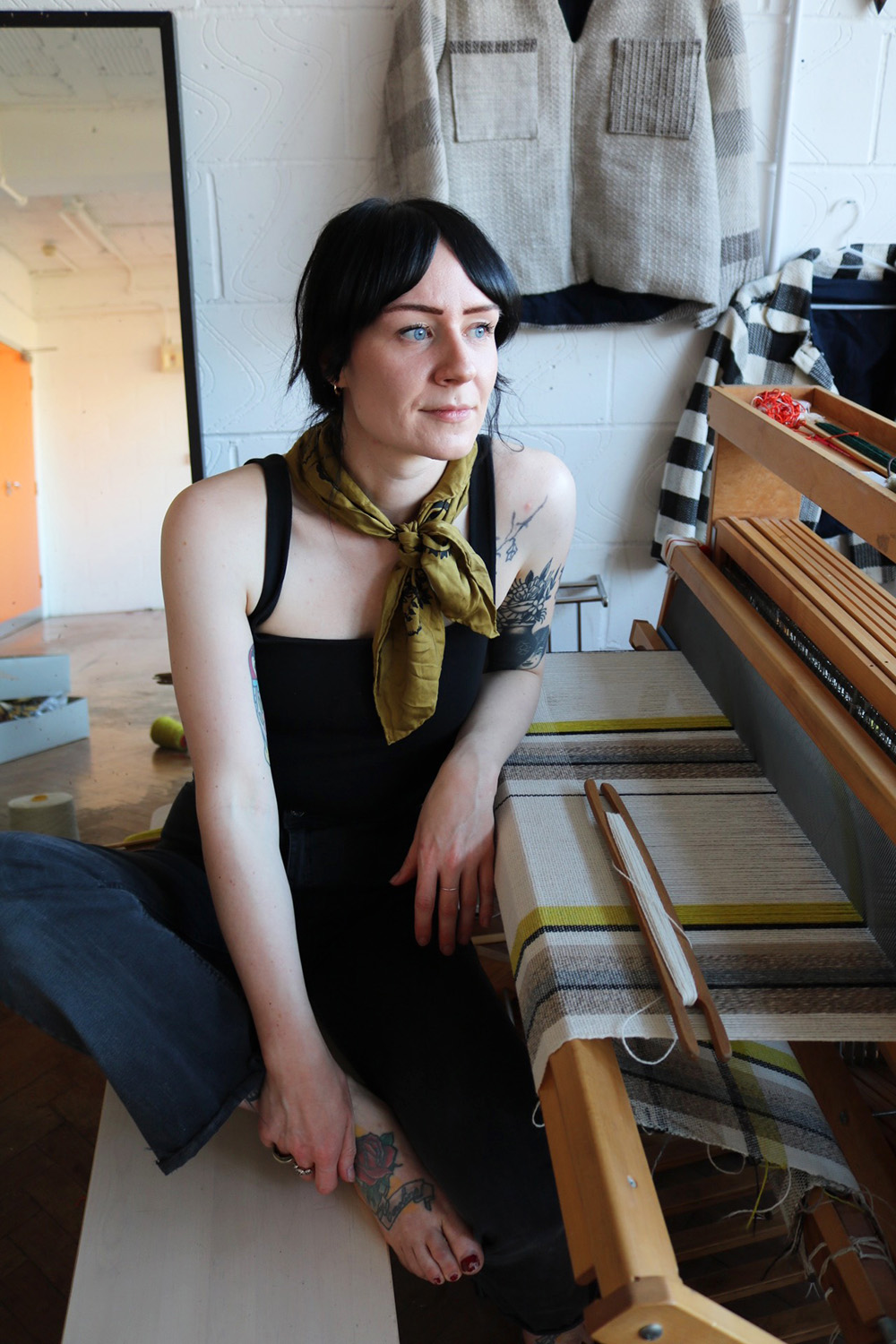 “I often think about how we are surrounded by fabric and how garments carry our lived experiences within them.” Weaver Hollie Ward lives and breathes her craft, dedicating her every day to weaving on one loom or the other. After school, Hollie began training with master weavers and attended an art college, completing a degree in woven cloth. Determined to find herself and a direction for her craft, Hollie went on a three-month weaving residency to Iceland, where she learnt how to harness the land, the climate and materials available to her. Rarely sampling designs, Hollie visualises her idea first and weaves pieces that awaken ideas of memory and time. “I trust my mind’s eye’s ability to visualise,” she says.