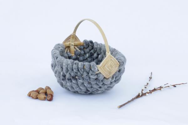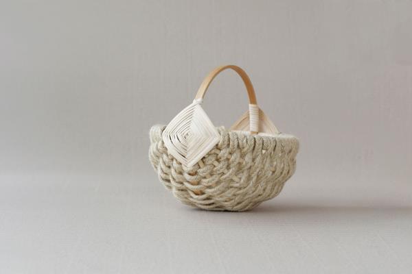 Idoia Cuesta's 360 degree approach to basketweaving is informed by both her studies in biology and her training in weaving textiles. By combining her deep knowledge of natural fibres with research into the basketry traditions of Galicia, Idoia has created an unconventional style of basketmaking which combines organic materials and natural fibres. Her vision, passion and research have led her to experiment and branch out into interior design and landscapes. She also works in fashion, collaborating with designers to make accessories and prototypes, as well as writing books and participating in international events, among them Milan Design Week in 2019.