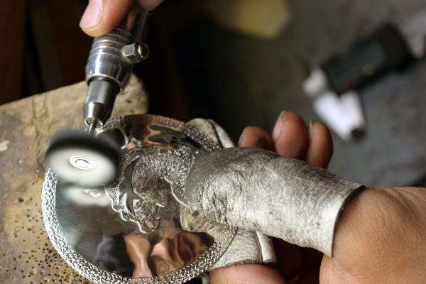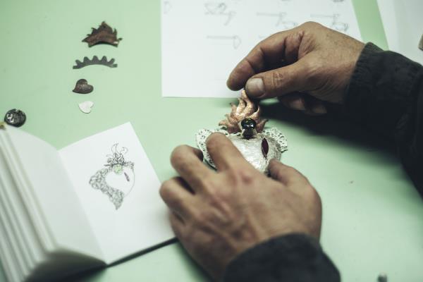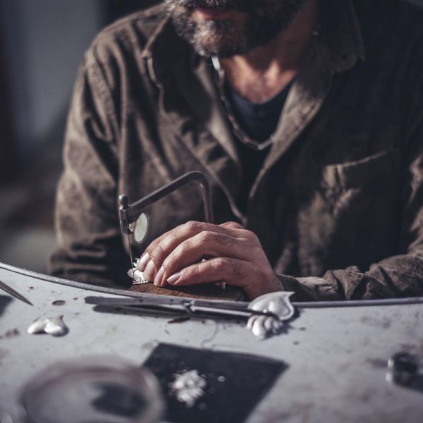 Roberto Intorre’s father was a building contractor, so it was natural to him to study architecture and city planning. But, before graduating, he had a revelation. He was with some friends at a party, when he saw a girl wearing a particular jewel around her neck. The next day, he tried to reproduce the same object with iron wire and forceps. In that moment, he decided to become a goldsmith. So, in 1992, he created a small workshop in his house. After graduation, he won three scholarships in Portugal, where he stayed for five years, studying and working. It was in 2000 that he came back to Italy and opened a workshop in Palermo. Here, he creates a series of beautiful jewellery made of lava, coral and silver that tell the story and the culture of his Island, Sicily. His collection "Gocce di magma” was recently chosen by the British Museum to represent the Sicilian identity.