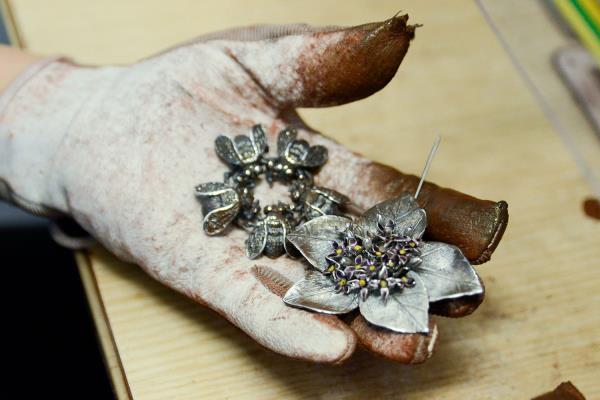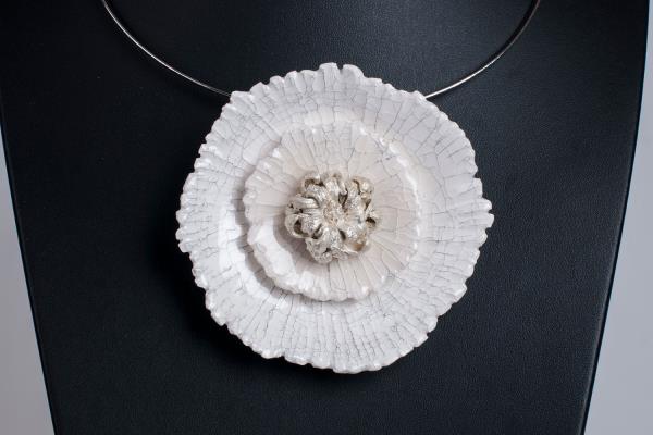 St. Petersburg jeweller Irina Shabut thrives on paradoxes. After 13 years as a neurologist, she left the St. Petersburg Military Medical Academy and launched her own jewellery brand, Shabut Jewelry. Her first collection of jewellery, released in 2015, was entitled The World of Henri Rousseau. Evoking the exotic imagery of the escapist world of Rousseau, she created lush and voluminous silver flowers in sensual shapes. Irina went on to make jewellery from porcelain, then developed a technique to transfer patterns from handmade lace to silver. “We have gorgeous antique lace in the family that is very precious to us, and I wanted to preserve this beauty,” she says. “I think this is a beautiful way of preserving a family heirloom.”