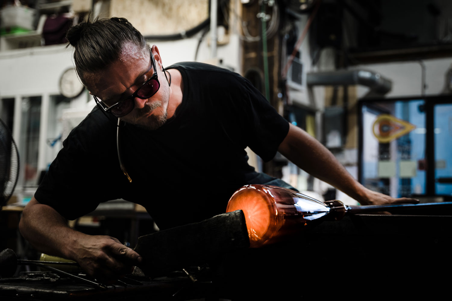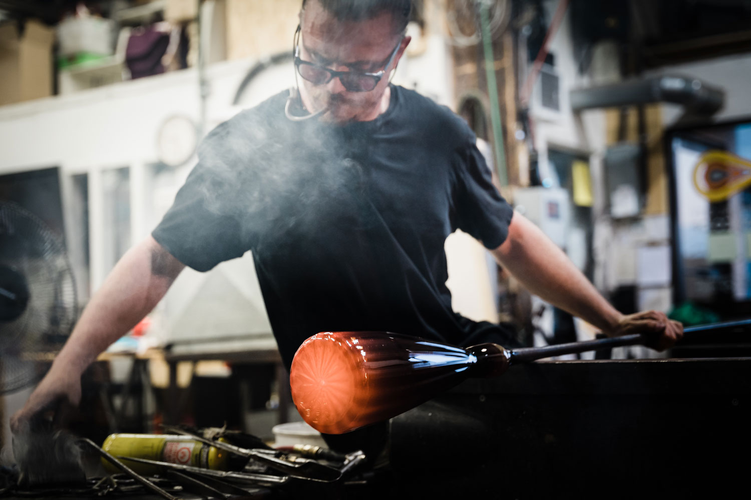 Jaan Andres Poldaas strives for perfection in the making of glass objects. After training at Alberta College of Art & Design in Calgary, his pursuit of excellence took him to JamFactory’s production-based associate program in Adelaide, where six years of daily hot shop work refined his control of form. Jaan’s studio practice is focused on blown glass vessels and pared-back sculpture work using coiled clear glass. “My considered pieces are layered, referencing the sedimentary rock I studied in the Rockies when I lived in Calgary and ice cores I have seen in documentaries,” he says. Jaan has trained, exhibited and taught internationally in Australia, China and the United States. A constant point of reference is his uncle Jaan Aare Poldaas, a Toronto colour-field painter, whose example continues to shape his ambitions.