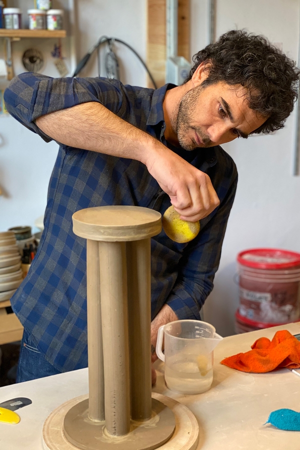 Jacopo Lupi is a man of many lives: he studied engineering, went to law school, and worked in IT. While living in Canada in 2016 he took up what was a popular hobby: a ceramics course. Little did he know that this was to become his passion and full-time job. Back in Milan in 2019, he opened a small studio in the Porta Romana district and started giving classes to support his activity and his research as a ceramicist. Today he manages the thriving workshop, having given up teaching to concentrate on his work. Jacopo’s creations are mostly wood fired, functional and artistic, and he also works on commissions he feels in tune with. When asked, he talks about his style as straightforward, where material matters and stands out, to reveal the different layers and colours of soil and nature.