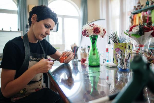 To understand her potential as a craftsperson, Jessica Ciaffarini had to go through a professional pause and a period of reflection. "I had a little girl and for four years, I devoted myself to her. During that time, though, I knew there was something that had to emerge from this time. Then it clicked, while talking to my husband (a wedding photographer) about the difficulties of capturing nice pictures of bouquets. It was precisely this, plus my passion for eco design and art, that drew me to Unusual Bouquet”. Since then, Jessica has been working as a textile and paper artisan in her own Italian studio, designing and creating unique and alternative flower compositions. She practises her craft “because it gives me the freedom to express myself and the opportunity to evolve my style and ideas more and more”.