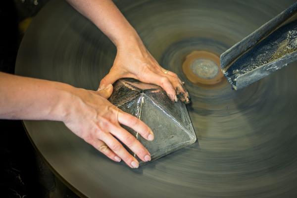 The glass sculpture of British artist Joanna Manousis is fascinating and multilayered. She puts ideas at the forefront of her research and investigates the potential of the medium by using in-depth techniques. With a hands-on studio practice spanning 17 years, Joanna strives to transform cast glass surfaces into reflective, three-dimensional mirrors. This ambition serves to “shift the viewers perspective, bringing new experiential possibilities.” Born and raised in Shropshire, England, Joanna has obtained a BFA in Glass (Wolverhampton University, UK), an MFA in Sculpture (Alfred University, NY) and is currently a PhD researcher at University of Sunderland at The National Glass Centre, UK. Her work encompasses the small and intimate to the large and sublime.