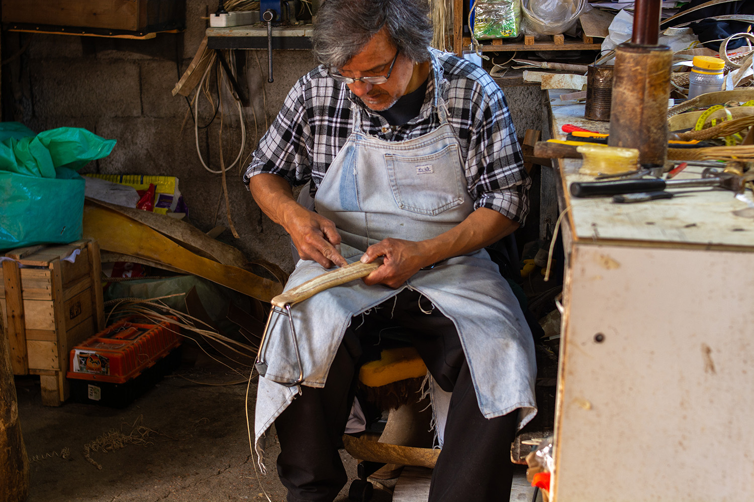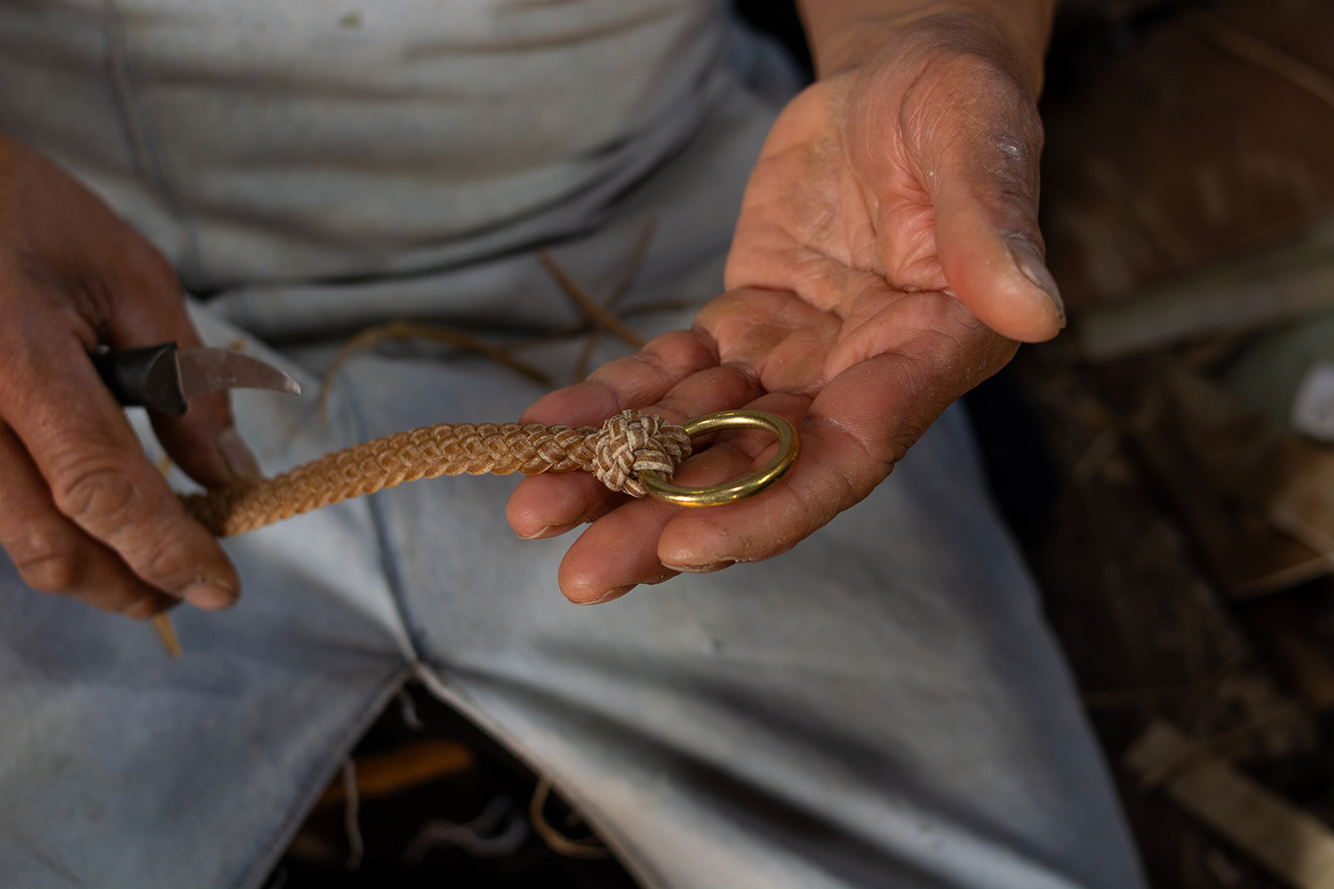 José Acuña started working with leather back in 1998 when, in his grandfather's shed in Tacuarembó, he took up leatherwork with hides alongside his cousins. "I remember starting to work with the material, and since then, I have never stopped," says José. The craft of a leatherworker is something very typical in countries like Uruguay and Argentina, where cattle production is quite extensive. "I work with leather without chemicals and do braided work," he adds. "I work with raw leather and create items for horses and gauchos alike." For this artisan, his greatest inspiration has always been his grandfather, whom he saw working since he was five years old. "He was the one who taught me this craft." What José enjoys most about his craft is preparing the raw materials: "cleaning the leather, fleshing it, and washing it so it turns out well, allowing me to work comfortably afterwards," he explains.