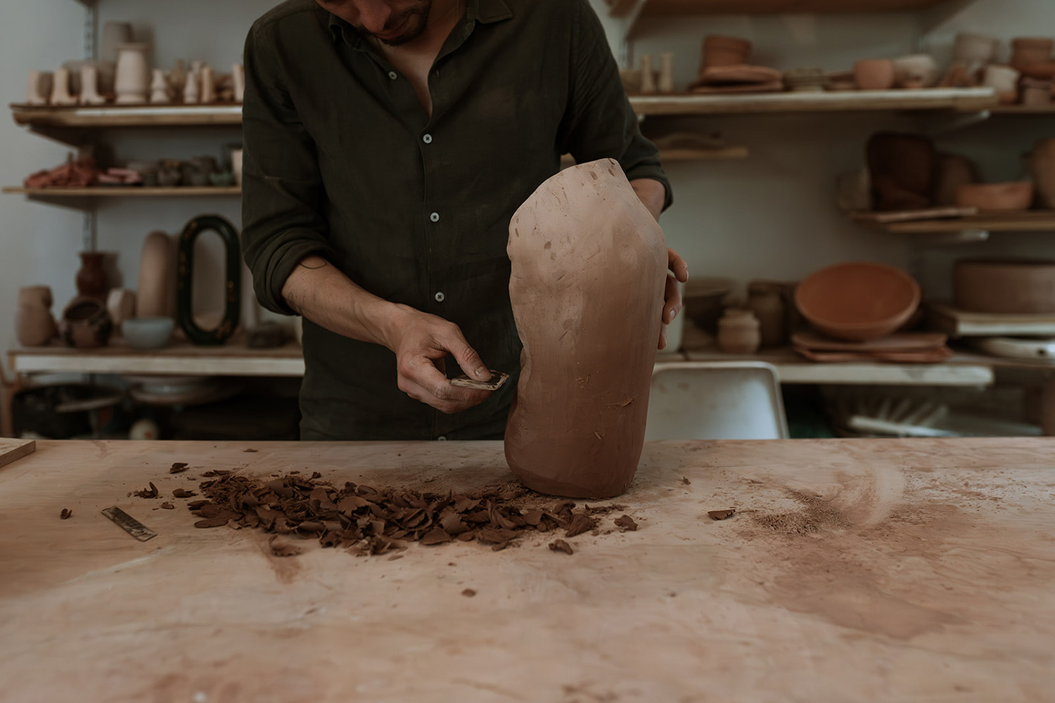 Juan Camilo Montenegro discovered ceramics while he was studying political science in Bogotá with a minor in Arts at Los Andes University. He found solace and fun in clay as he struggled to complete his major studies. Ceramics became his hobby for a couple of years while he worked for a firm. In early 2020, he decided to take a leap of faith and rented a big atelier, attracted by the light-filled space. Having no money for such a venture, Juan Camilo decided to give classes and started to teach his craft. “It all started to flow from then on and I was able to pay for my studio and have a lot of work, even during the Covid pandemic.” With great passion and faith Juan Camilo has followed his conviction to let things run their course. His work is a constant reflection of this.